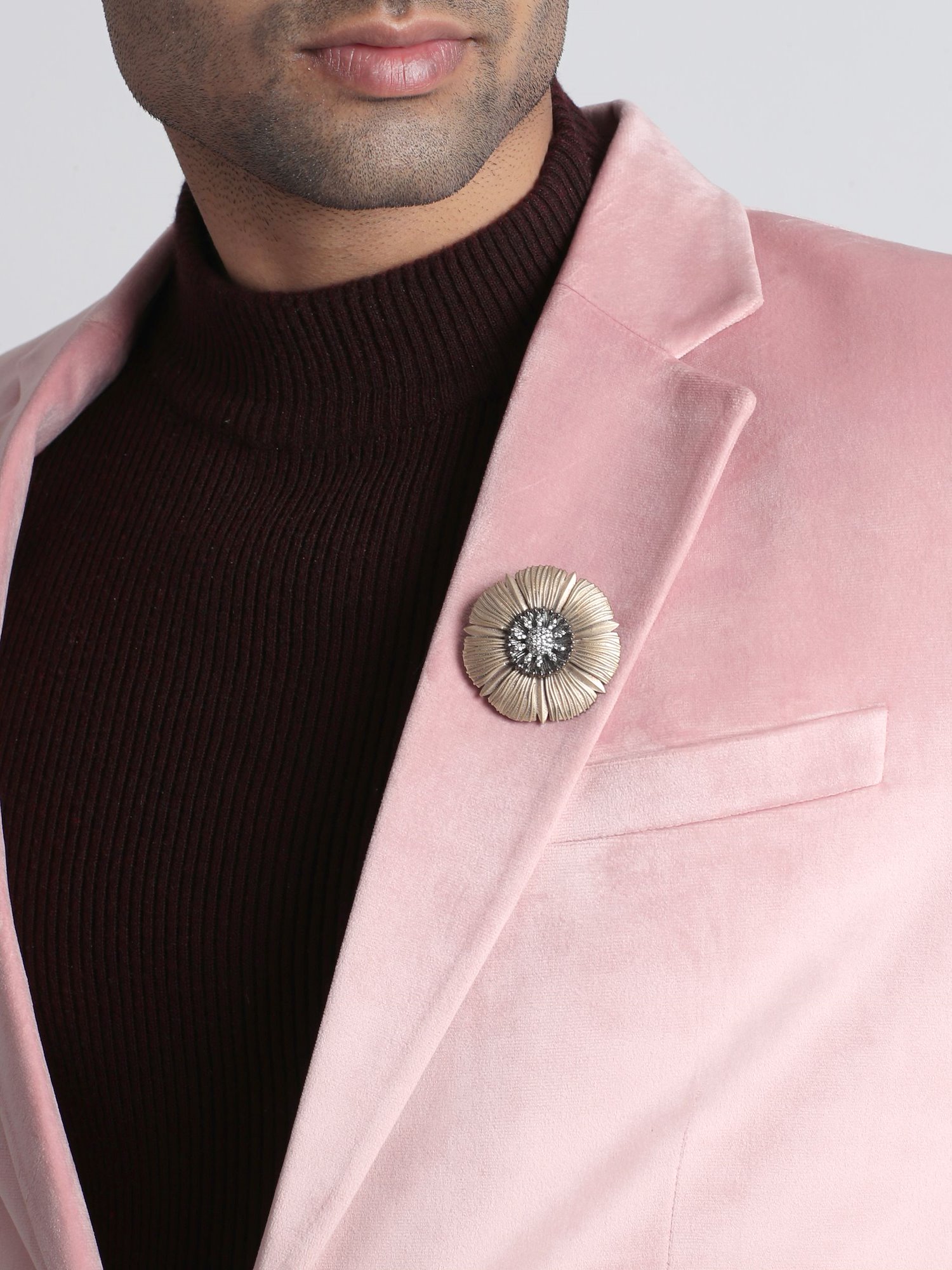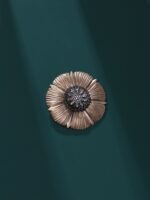 The brooch takes inspiration from the elegant flower called Aster. It is based on the floral design pattern and entails a subtle use of studs that’s symbolic of growth and development.