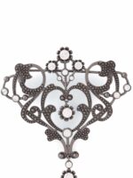 The design of the Bespoke Bliss Brooch is a harmonious blend of antique-inspired elements and the captivating presence of studs. Antique-style detailing, including intricate patterns and ornate flourishes, forms the foundation of the brooch’s design, evoking the grace and refinement of past eras. Studs, thoughtfully placed within this design, introduce a dynamic contrast, infusing the piece with a touch of modernity and sparkle.Every aspect of this brooch is meticulously crafted to ensure a balanced and timeless design. The choice of materials and the arrangement of elements have been carefully considered to capture the essence of antique aesthetics while embracing the brilliance of studs.