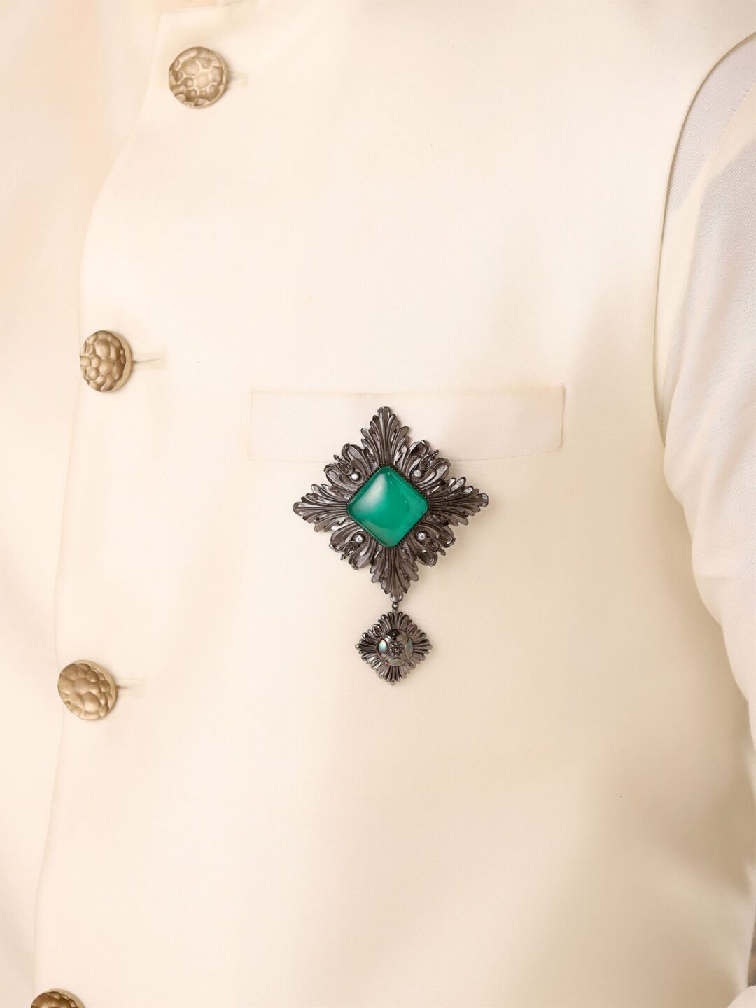 Drawing from the enigmatic qualities of the color green, Hazrat-e-Ishq Brooch encapsulates a sense of intrigue and allure. This brooch serves as a reminder to embrace life’s mysteries, embracing the unfamiliar with an open heart. With its timeless design, the brooch sparks curiosity and dialogue, making it an ideal companion for those who appreciate simplicity and the intrigue of the unknown.