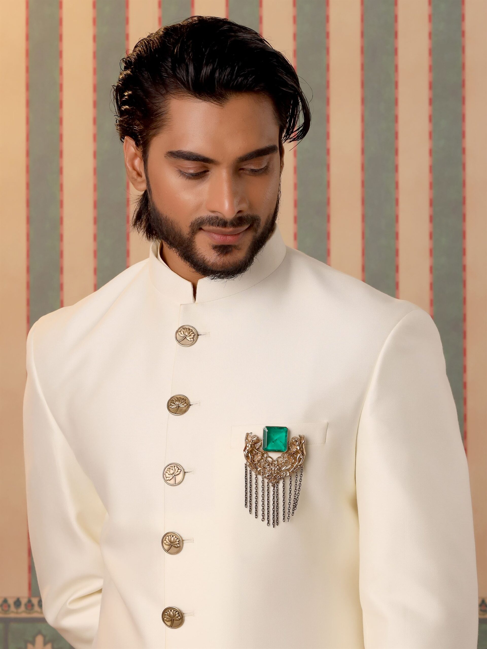Embark on a whimsical journey with the “Jadui Naginey Brooch.” This enchanting accessory showcases an intricately designed scene of two playful elves gracefully dancing. Crafted with great attention to detail, the brooch captures the magic and charm of these mythical beings. Adorned with a sparkling green gemstone, it radiates a captivating aura, symbolizing the magic of the forest. Let the Brooch be a delightful expression of your inner wonder, adding a touch of enchantment to your style and inspiring you to embrace the joy of imagination and fairy tales.