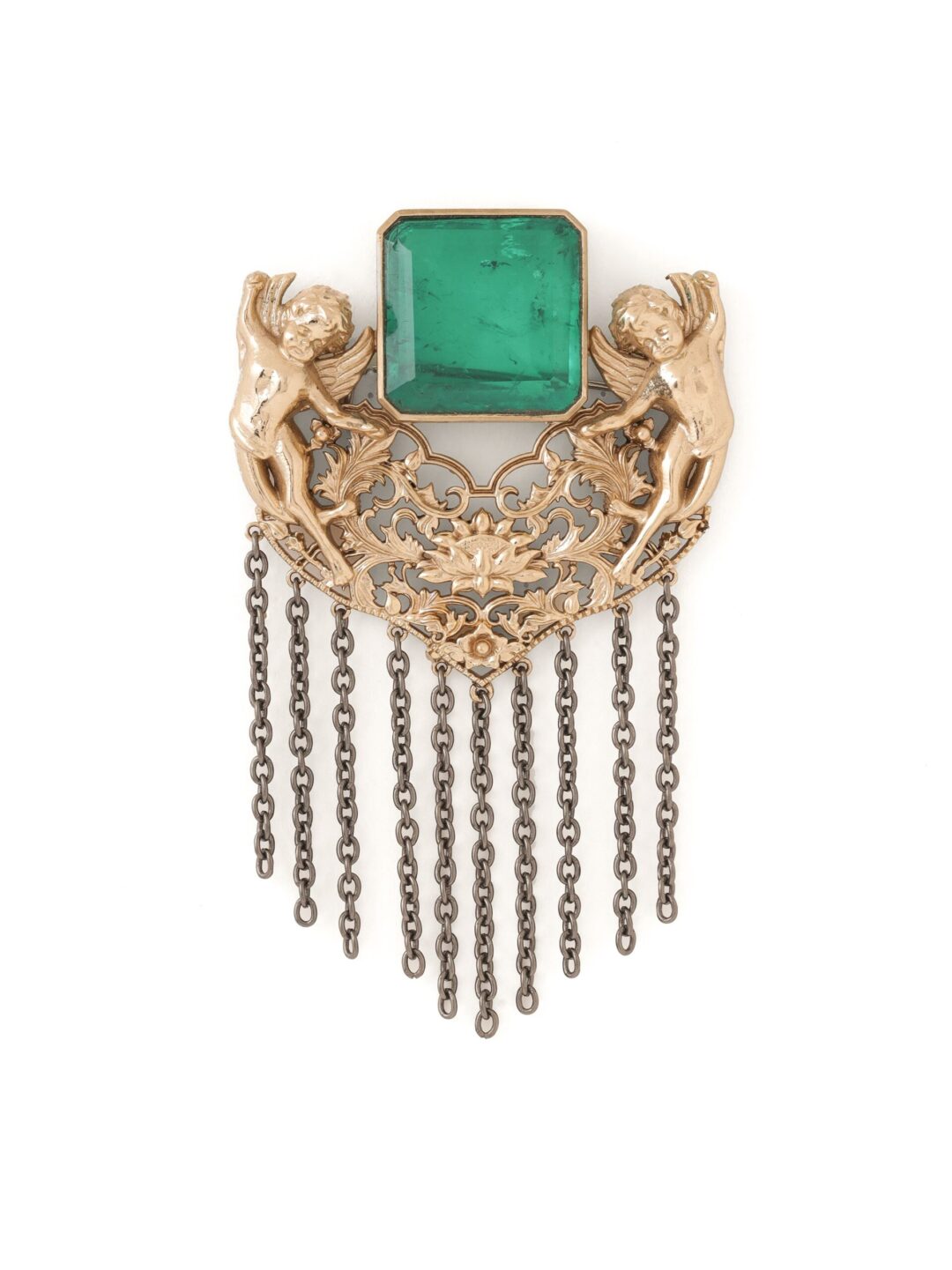 The Brooch design is a celebration of the captivating allure of elves. Inspired by their graceful movements and mythical charm, the scene captures their playful dance. The intricately sculpted brooch reflects the elves’ whimsical nature and endearing spirit. The sparkling green gemstone represents the magic of the forest, where these mystical beings thrive. The brooch is an invitation to embrace the enchantment of fairy tales and ignite the spark of imagination that resides within each of us.