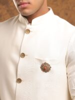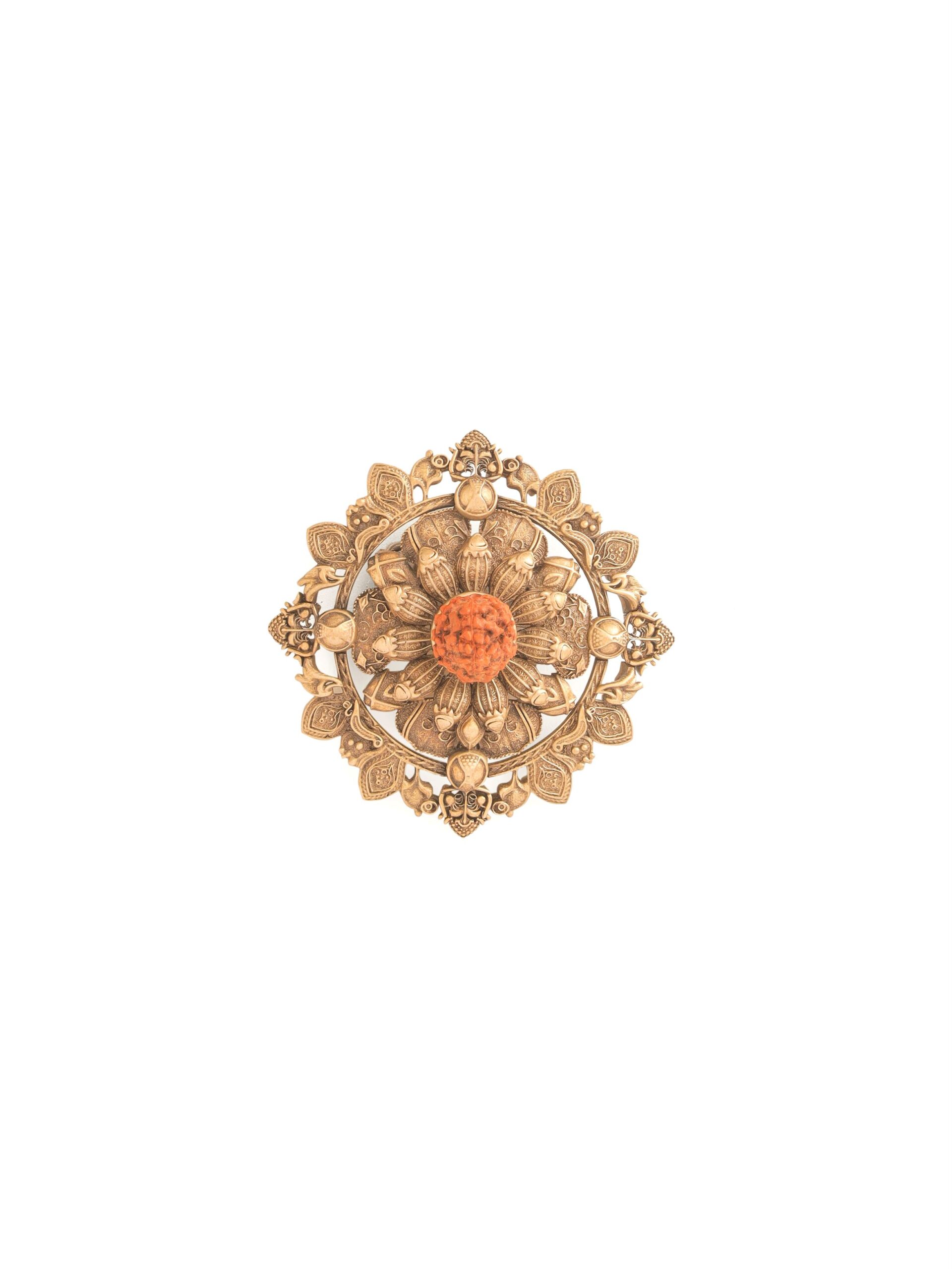 The Pushp Rudraksha Brooch showcases a captivating design that seamlessly combines floral elegance with spiritual significance. At its centre lies a sacred Rudraksha bead, encased within a delicate floral motif crafted with intricate detailing. The petals of the flower gracefully embrace the Rudraksha, symbolising the divine connection between nature and spirituality. The brooch’s polished finish and refined silhouette add a touch of sophistication, while the subtle presence of the Rudraksha exudes a sense of reverence and mystique.