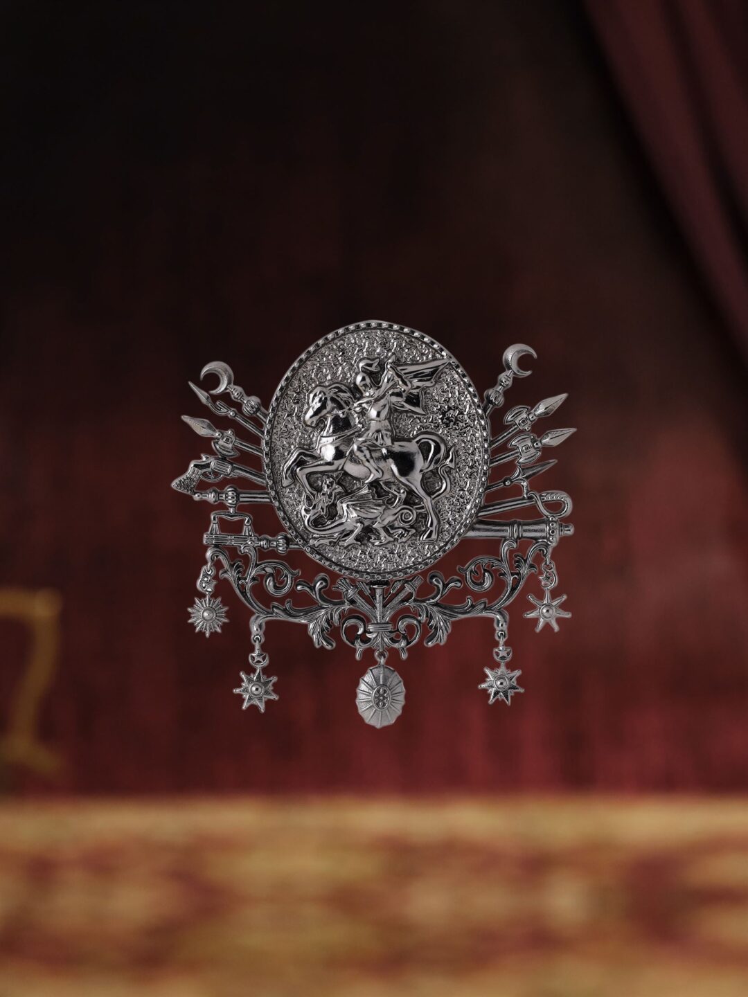 The comprehensive design of this brooch is testimony to the fact that Cosa Nostraa believes in creating masterpieces. The Warrior Prince Brooch has been designed with extreme detailing and intricate craftsmanship.