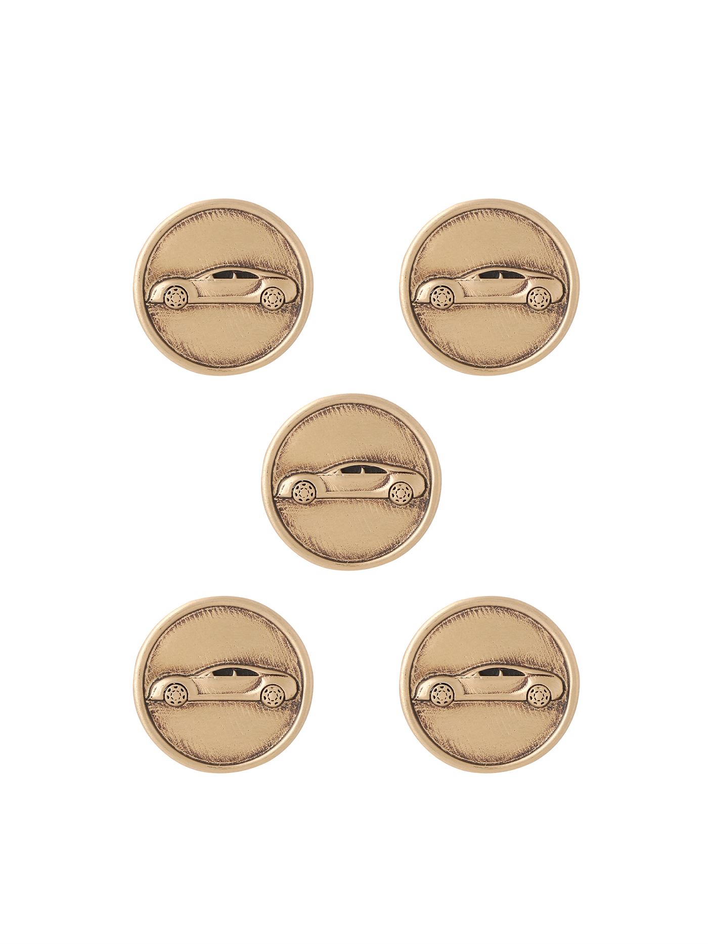 The design of this button set is an intricately created car that looks wonderful in the golden plate. It is a sign of pure perfection in craftsmanship and made to steal the show.