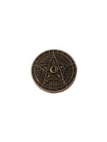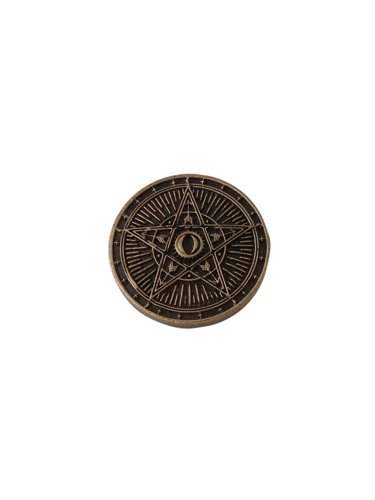 The button features a stunning star in the center, surrounded by the sun and the moon. The star is adorned with shimmering crystals, creating a sense of magic and wonder. The sun is designed with a golden finish, representing its warmth and energy.