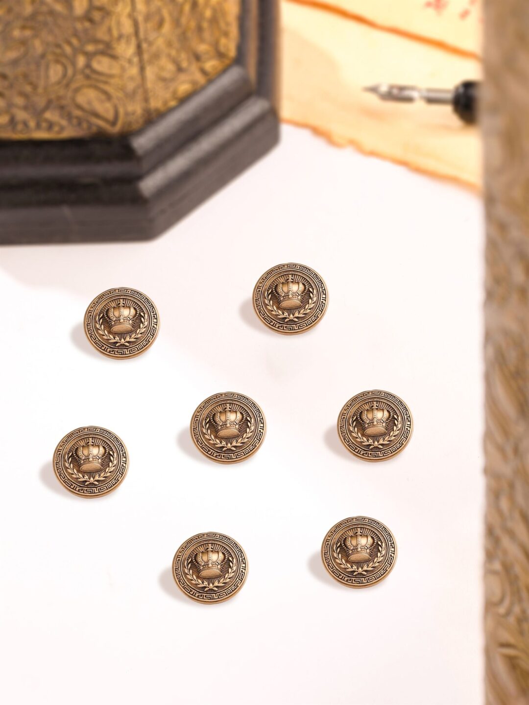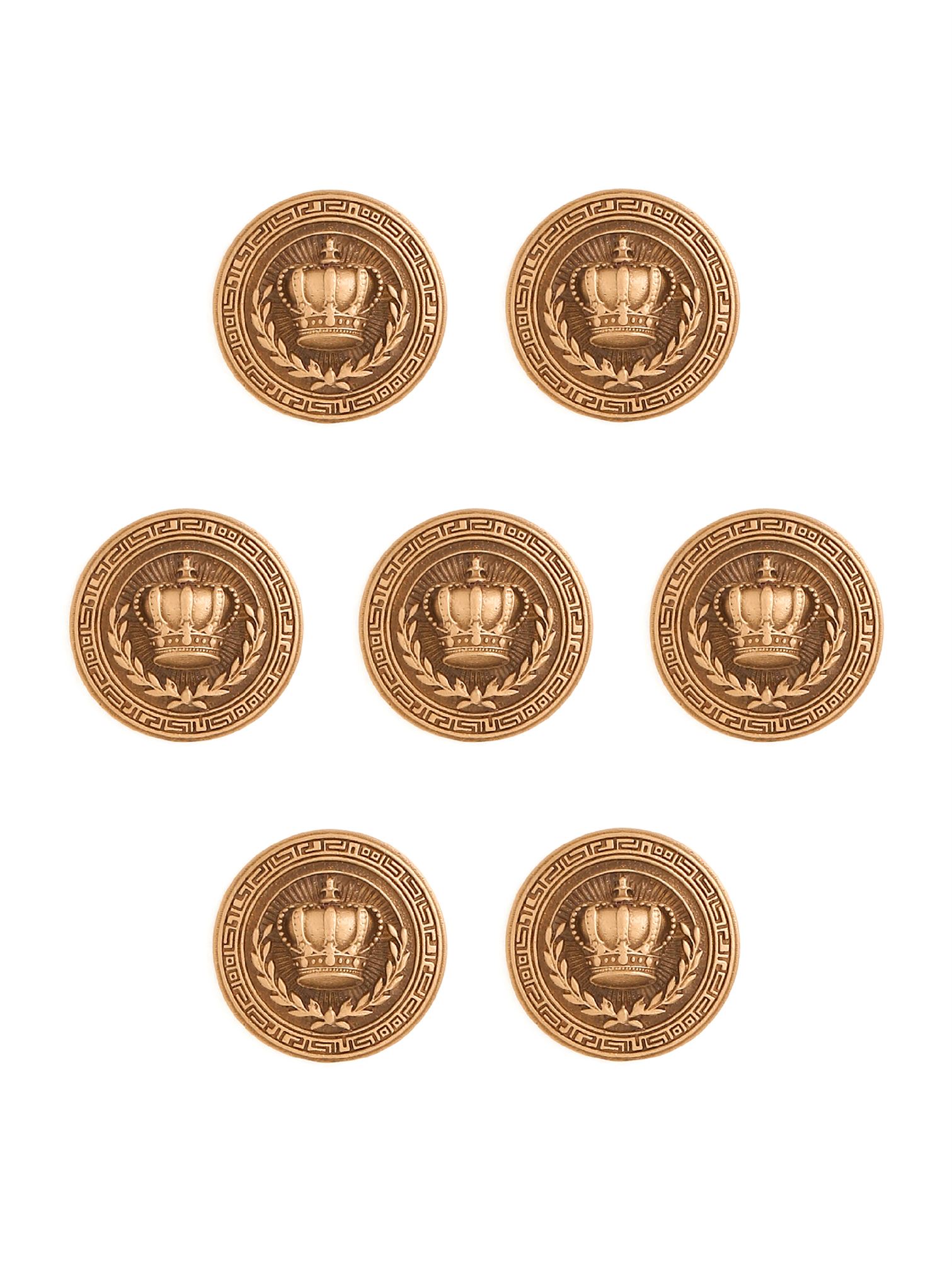 Embrace regal elegance with our exquisite button featuring a dimensional crown design. Crafted from gleaming gold-tone metal, this accessory adds a touch of majesty to any garment, symbolizing power and authority.