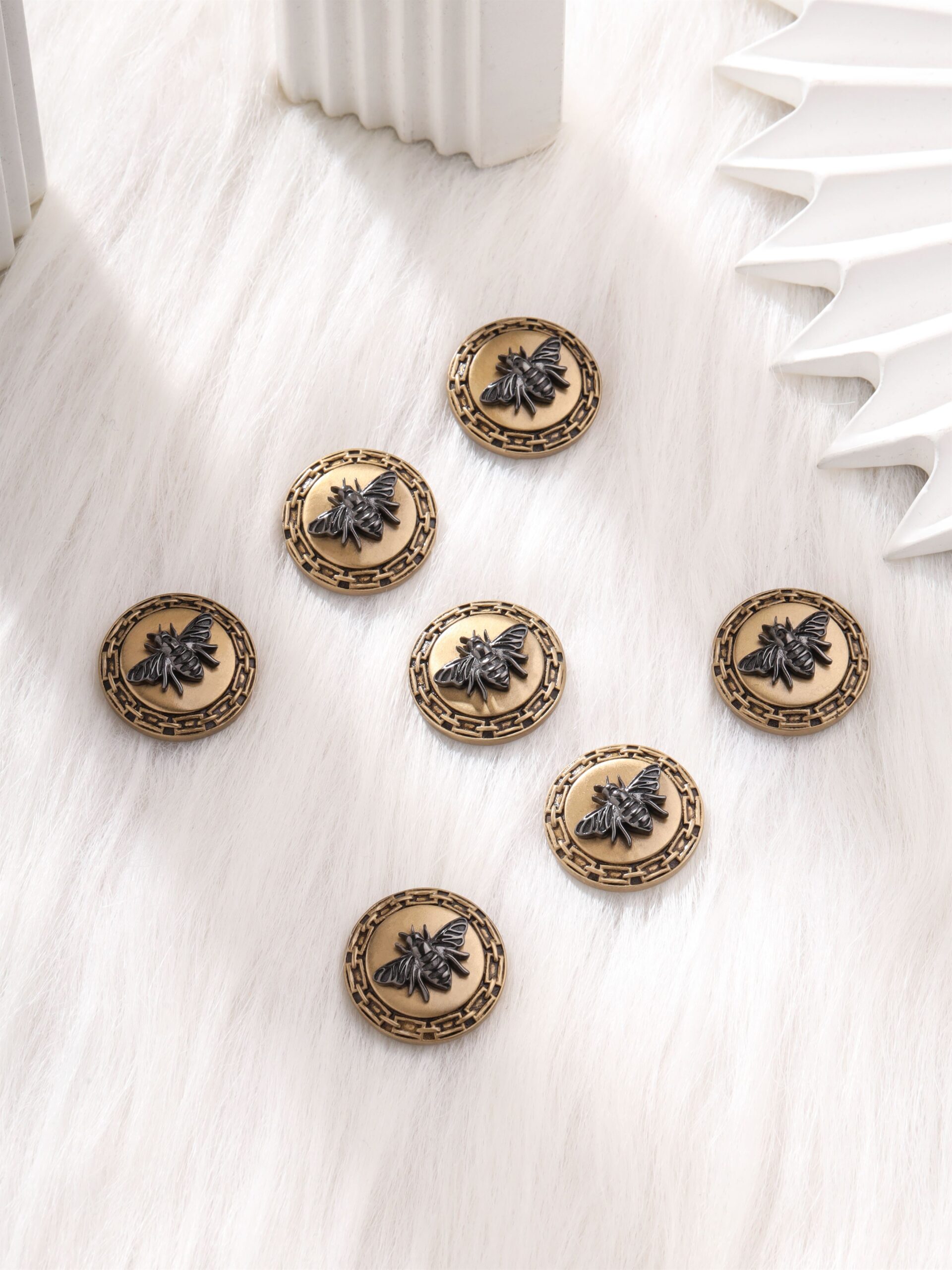 The Honey Bee Harmony Buttons are a work of art, featuring an intricately detailed honey bee motif at the center, surrounded by a border pattern inspired by the beauty of blooming flowers. This design seamlessly combines the honey bee’s image with modern craftsmanship, creating a stunning addition to your wardrobe. The honey bee’s delicate wings and the floral patterns evoke a sense of harmony and appreciation for the wonders of nature, making these buttons a fashionable tribute to our ecological companions.
