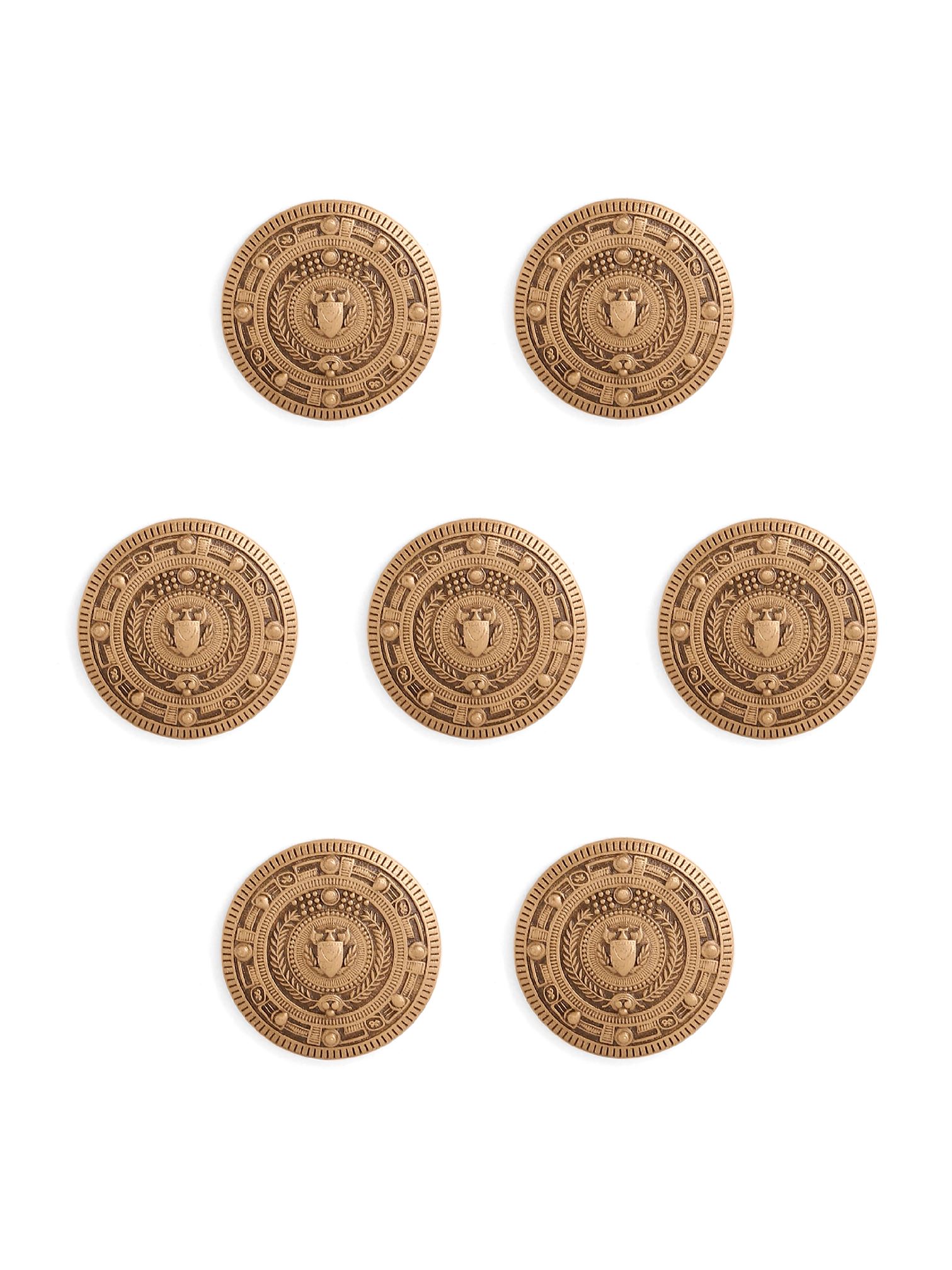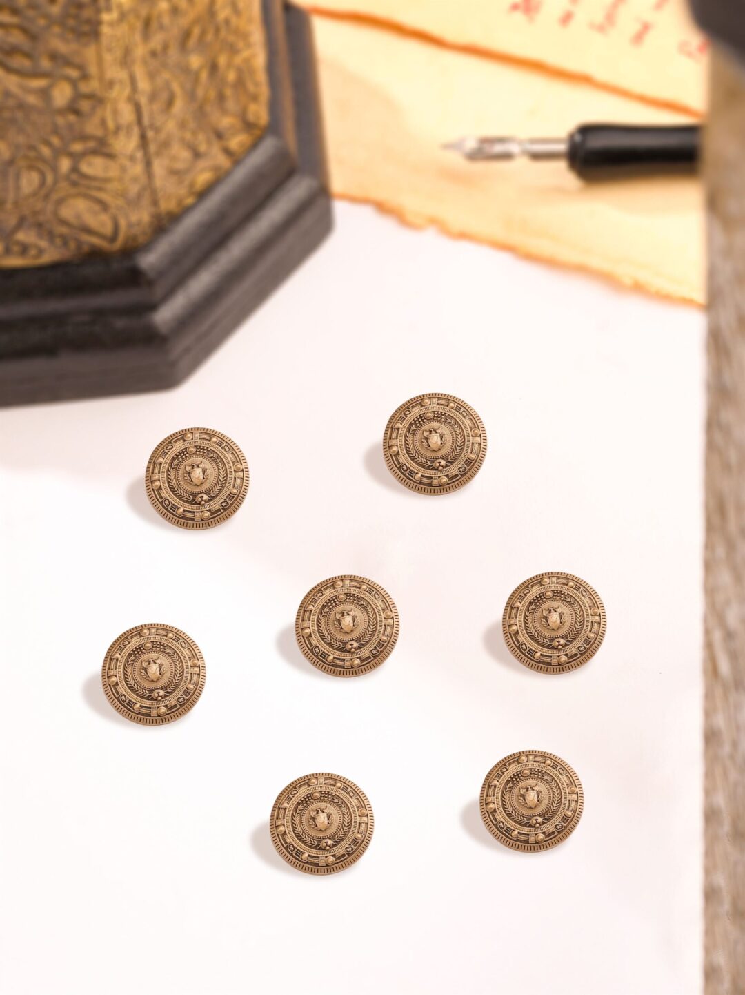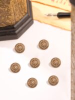 Unveil the mystery of history with our captivating shield button. Crafted from antiqued metal, its textured surface adds depth and intrigue, capturing the essence of timeless design and hidden stories.