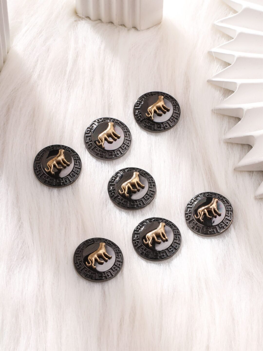 Inspired by the image of a majestic leopard, a symbol of power, speed, and grace, these buttons symbolize the wilderness. They capture the essence of the leopard’s commanding presence and its ability to move with unmatched grace and speed through the wilderness. The Lavish Leopard Buttons are a choice for those who seek to express their admiration for the wild, drawing inspiration from the untamed and breathtaking world of the leopard.