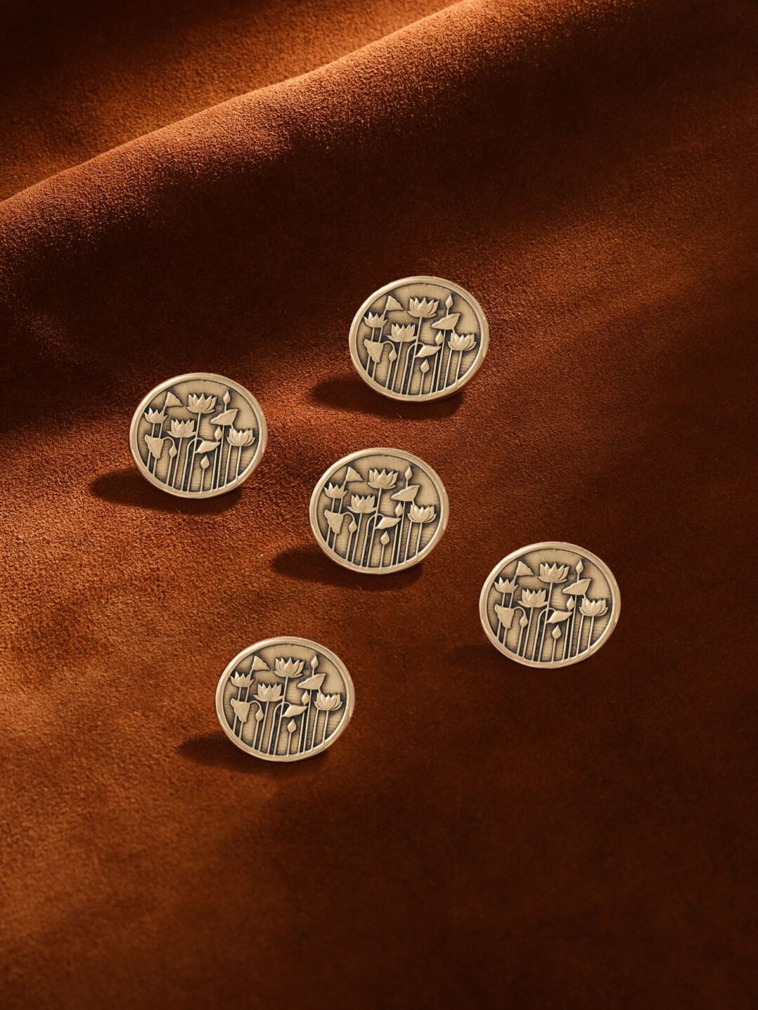 The Lotus Garden Buttons are a treat to the eyes. Made for the lovers of nature and flowers, this button set is a mark of beauty and elegance. Pair them with your cufflinks, brooch and leave everyone by surprise.