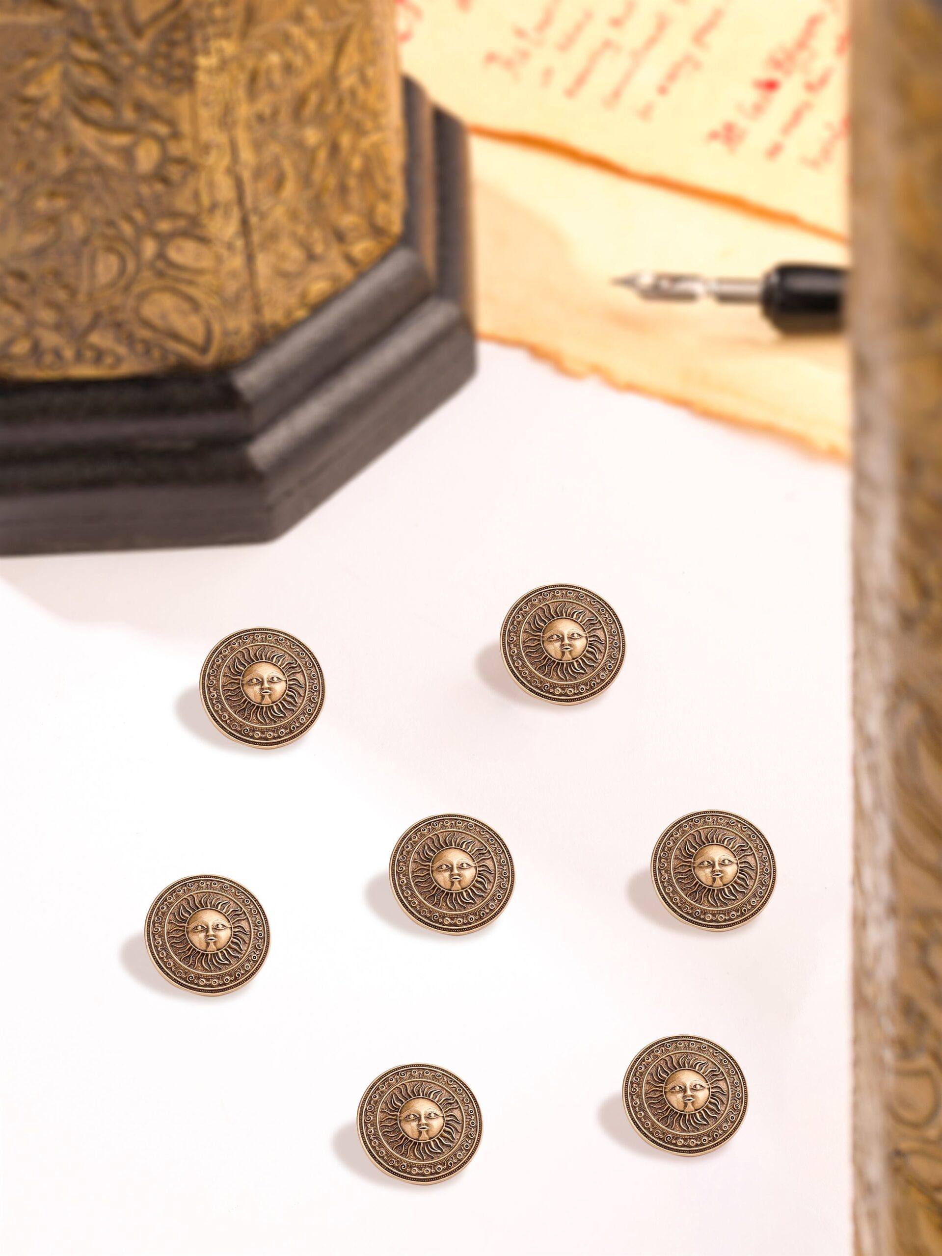 Embrace modern sophistication with our captivating button, featuring a Sun with a luminous vibe. Crafted with elegance, this unique accessory adds a touch of timeless charm to any ensemble, exuding grace and refinement.