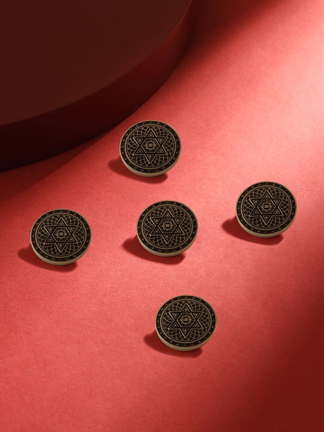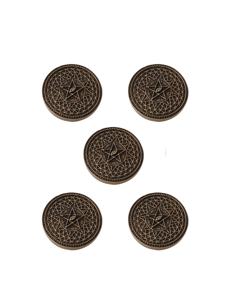 The inspiration behind this button is from the belief that the star represents guidance and hope, while the eye represents protection and spiritual awareness. This button is a perfect accessory for anyone who seeks protection and spiritual guidance. This button is a perfect accessory for anyone who wants to add a touch of spirituality and mystique to their style.