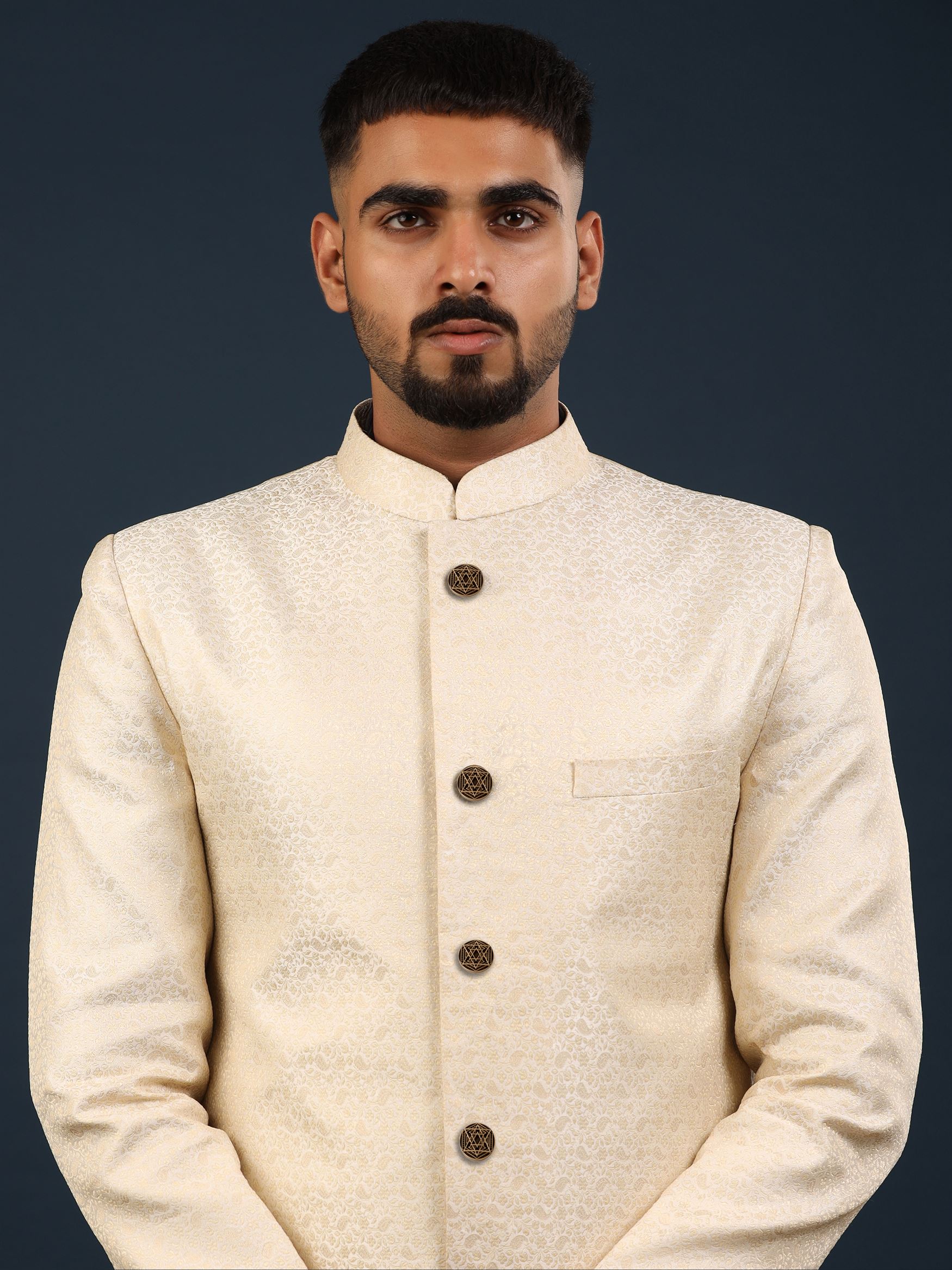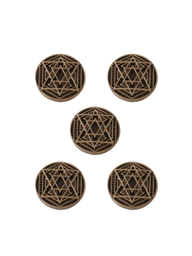 The multi-star pattern shows the concept of interconnectedness. Stars are a symbol of unity and represent an idea of a shared community. Also, stars have been used in many different cultures throughout history, and a button with a multi-star pattern incorporates elements of traditional design.