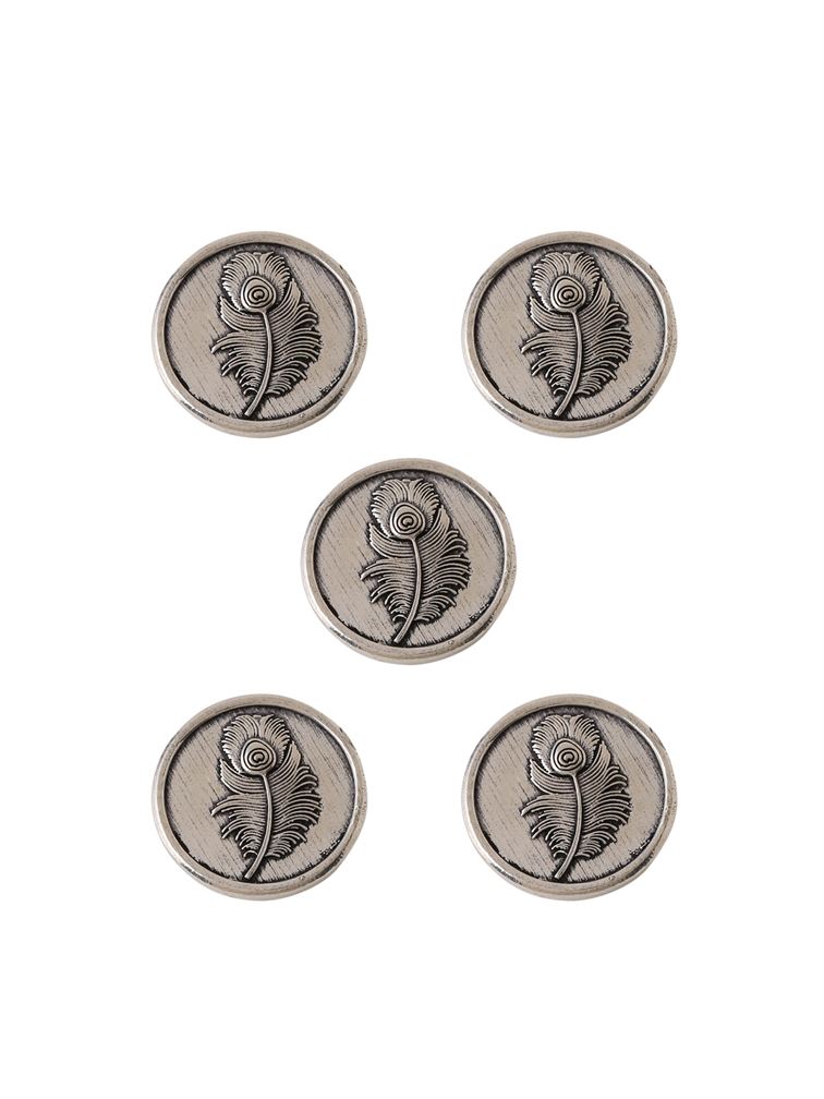 The design of this button set is that of a beautiful peacock feather. Its detailing leaves us in awe of the wonderfula artistry and craftsmanship. Elegantly etched, this design is sure to steal the show.
