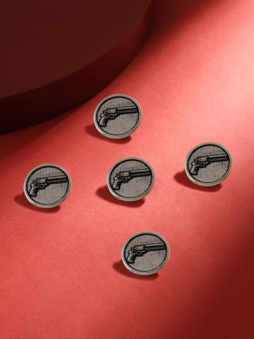 Arm up your wardrobe with the Power Gun Button is intricately designed to represent true freedom. This is a stylish addition to your dress for any formal occasion. Decorate it tastefully on your outfit and project a refined aura.