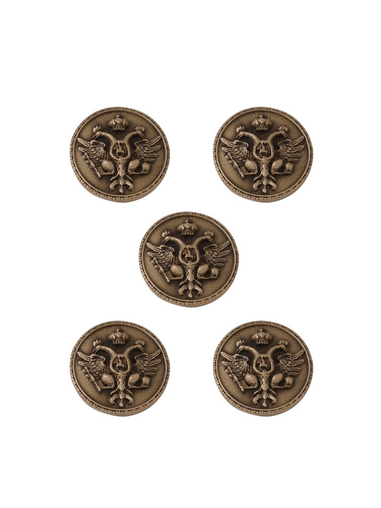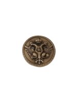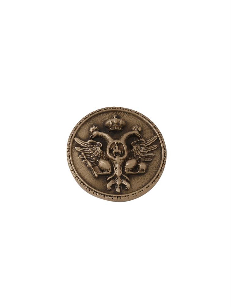 The button features two peacocks standing side by side, each holding a sword in their beak. They are adorned with shimmering crystals, adding a touch of sparkle and elegance. A regal crown sits on top of their heads, adding to their majestic appearance. Its unique design and high-quality craftsmanship make it an excellent addition to any occasion , and its symbolism adds depth and meaning to its beauty.