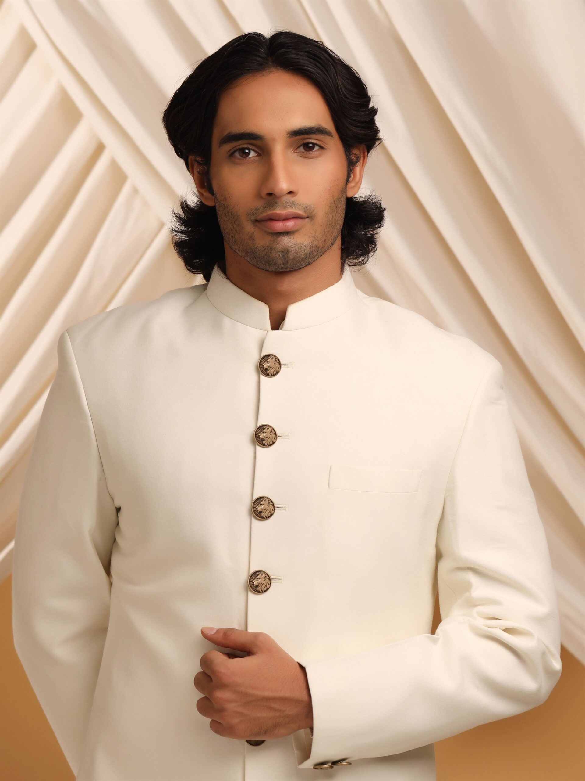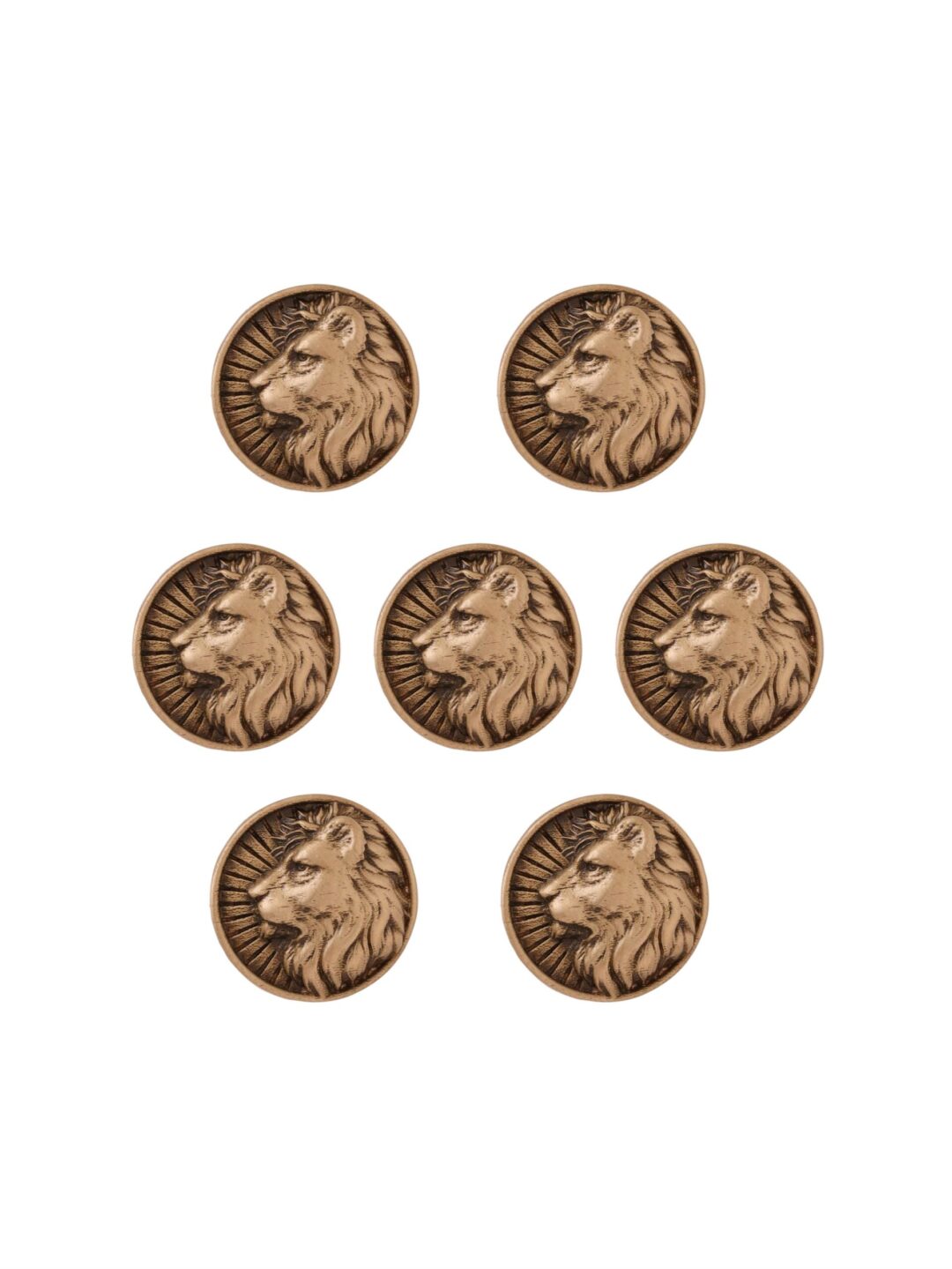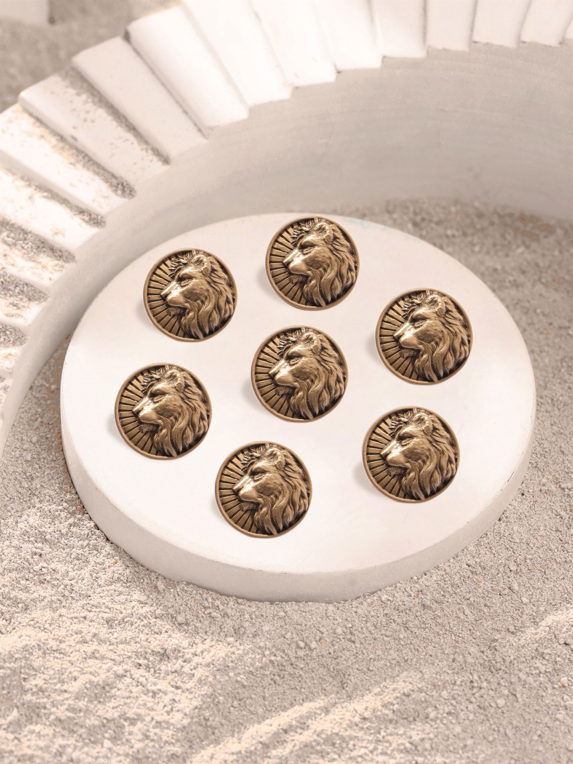 The button showcases a beautifully sculpted lion?s profile, surrounded by radiating lines that highlight the lion?s mane and create a dynamic, powerful visual. The textured surface and three-dimensional details enhance its elegance, making it a standout piece for adding depth and personality to classic attire.