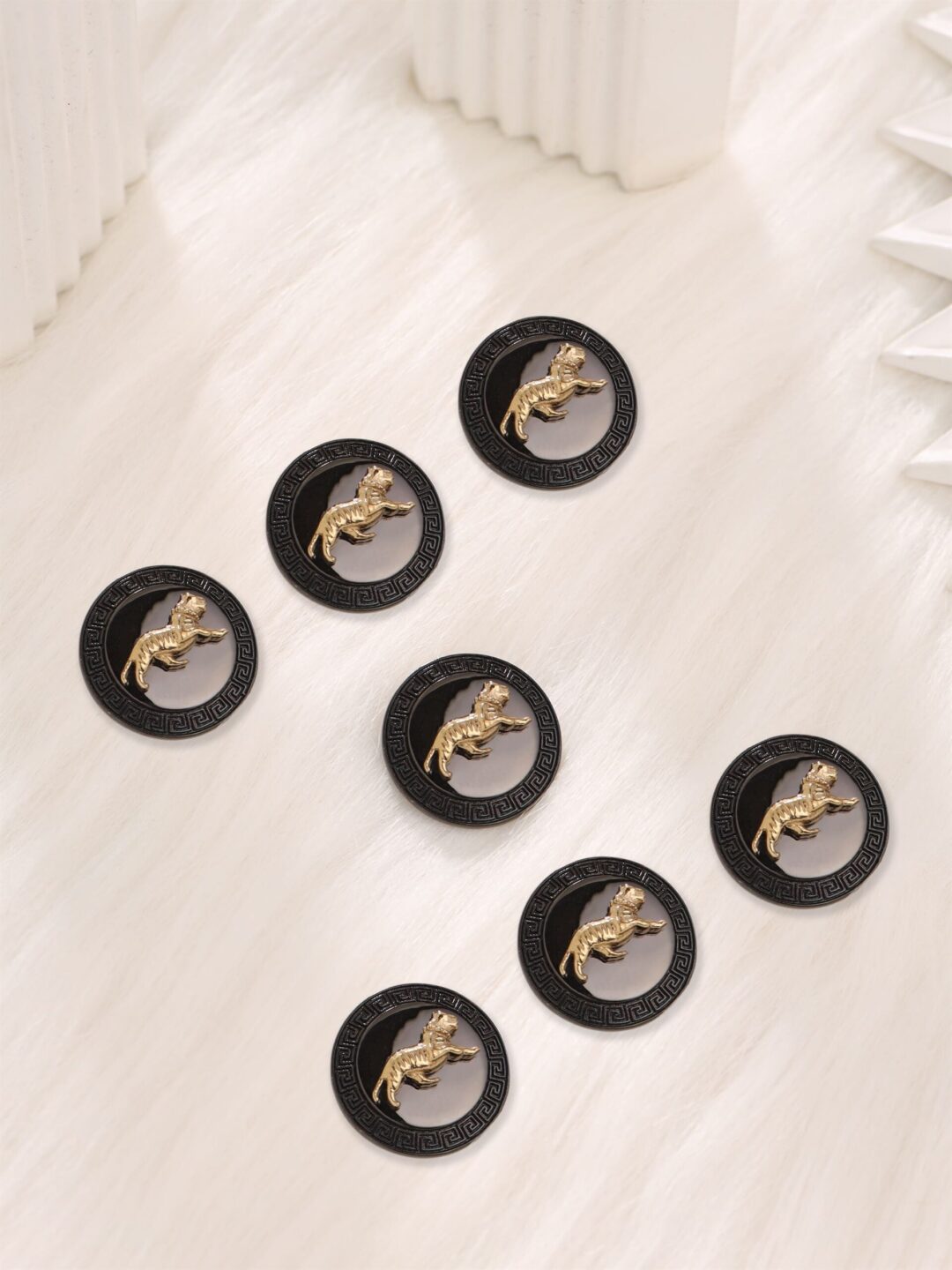These buttons are inspired by the image of a majestic tiger, a symbol of power, ferocity, and grace. They capture the essence of the tiger’s commanding presence in the wild and its significance as the national animal of India. The Terrific Tiger Buttons enable the person to express their admiration for the majestic beauty of the tiger and unmatched style, drawing inspiration from the ferocious yet graceful world of this magnificent creature.