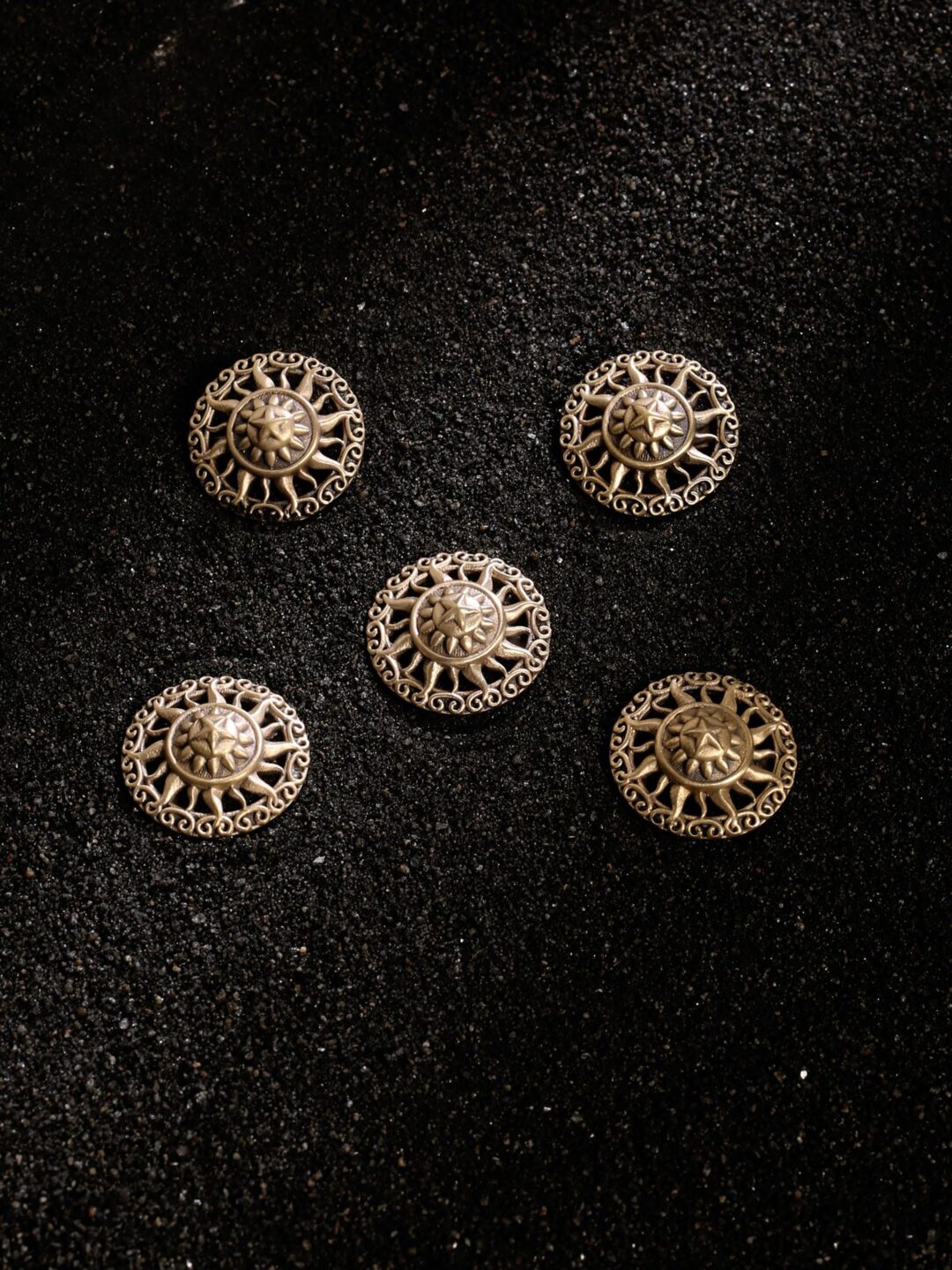 The sun buttons are magnificently crafted with intricate design that brings out its elements with perfection. It is light in weight and engraved in bronze. You can wear this accessory with a bandhgala or coat.