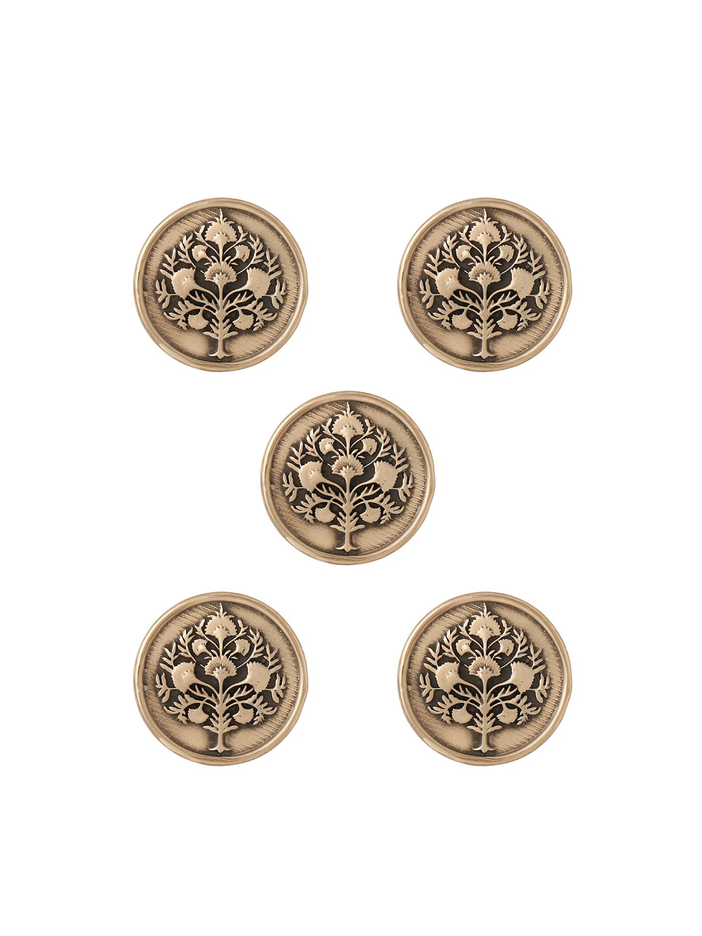 The Tree Motif Buttons are a depiction of a prosperous life that is not still but marked by growth. These buttons symbolise lifr and continuity as a tree is always growing and showering us with fruits and flowers. Pair these butons with a wonderful outift to make a mark.