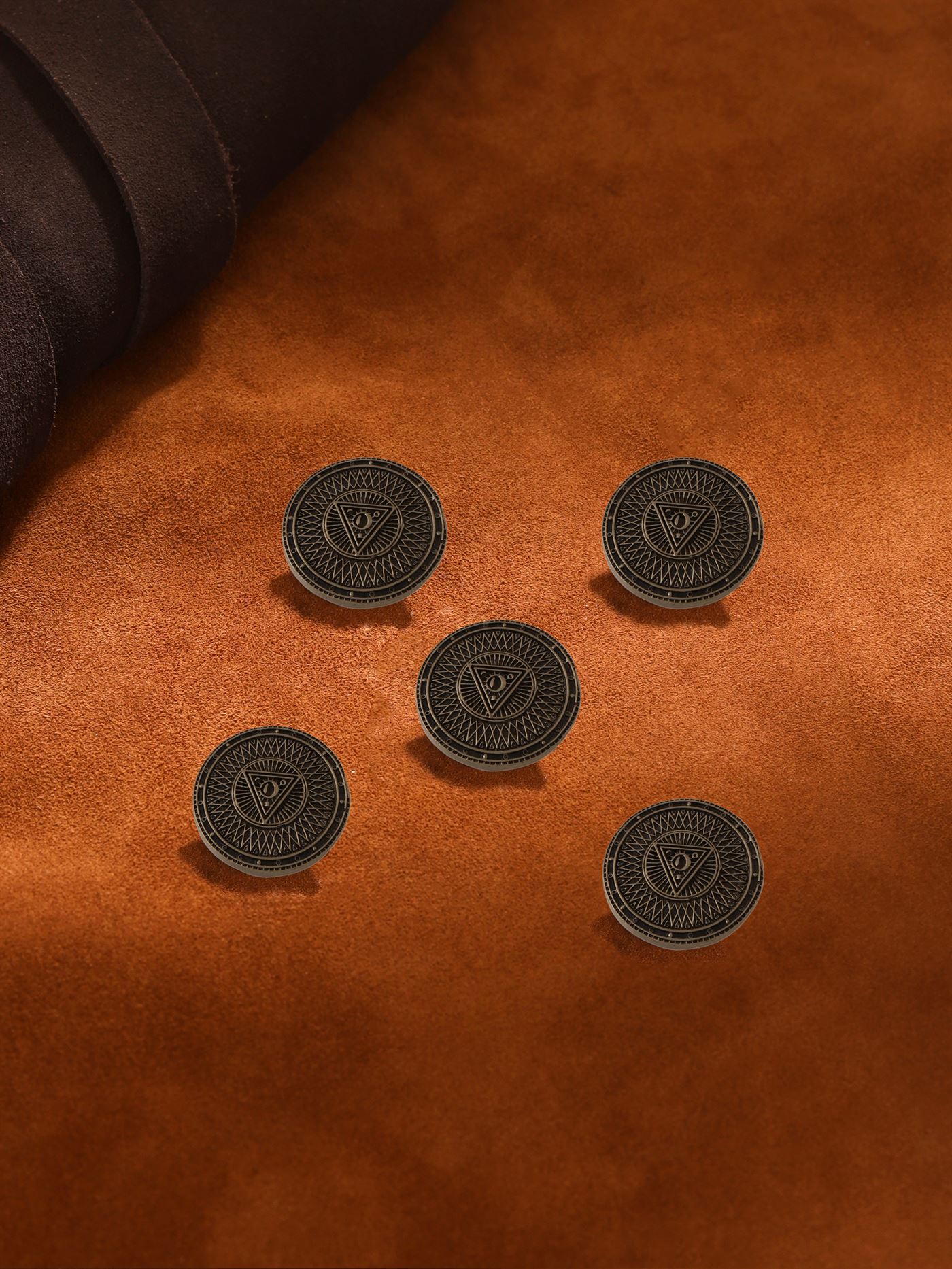 In terms of design, the button could be made in a range of sizes, from small and delicate to larger, more statement pieces. The use of different metals, such as silver or gold, could also influence the overall design and style of the button. This button features a double lined triangle, while others could incorporate multiple triangles arranged in different patterns or shapes.