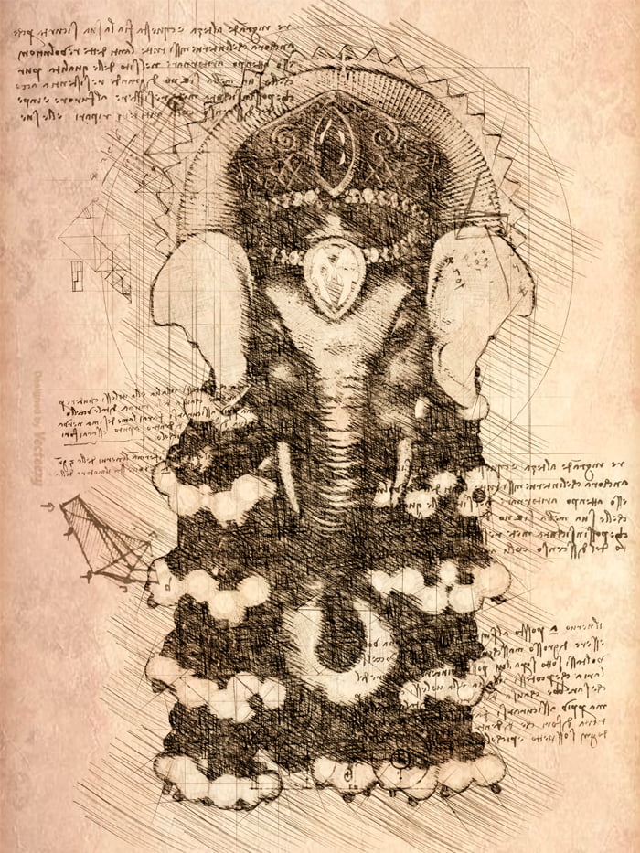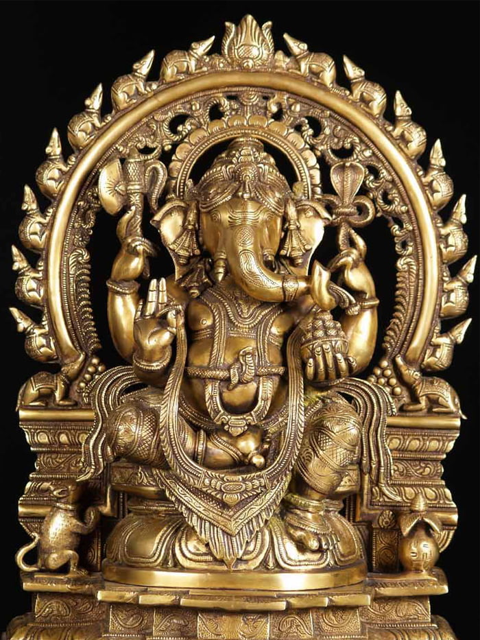 Lord Ganesha is represented with the head of an elephant since the early stages of his appearance in Hindu mythology; he is synonymous with authority, endurance, strength, and courage. The concept of ‘buddhi’, or intelligence is closely associated with the personality of Ganesha, who also supports and guides all other chakras, thereby governing the forces that propel the wheel of life.