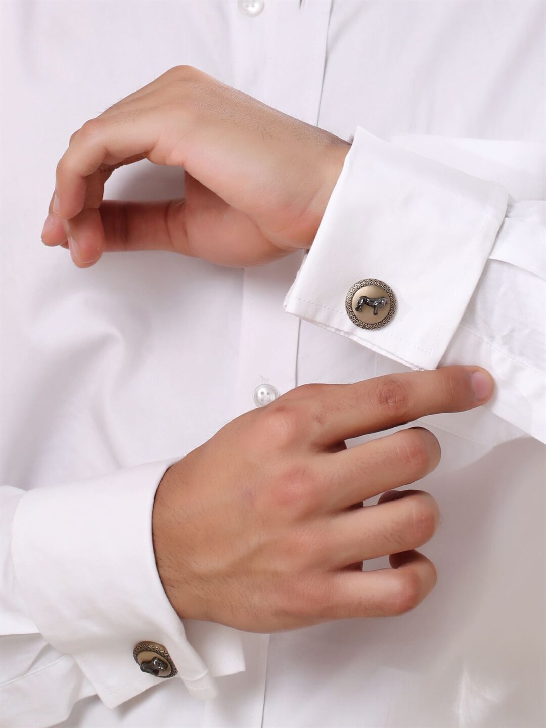 Inspired by the lion, the undisputed king of the jungle, these Cufflinks symbolize bravery and leadership. They capture the essence of both the lion’s fierce strength and its dignified demeanor, while the border pattern pays homage to the wild and untamed beauty of the jungle. The Jungle King Cufflinks are a choice for those who seek to express their indomitable spirit and unmatched style, drawing inspiration from the untamed and majestic world of the jungle.