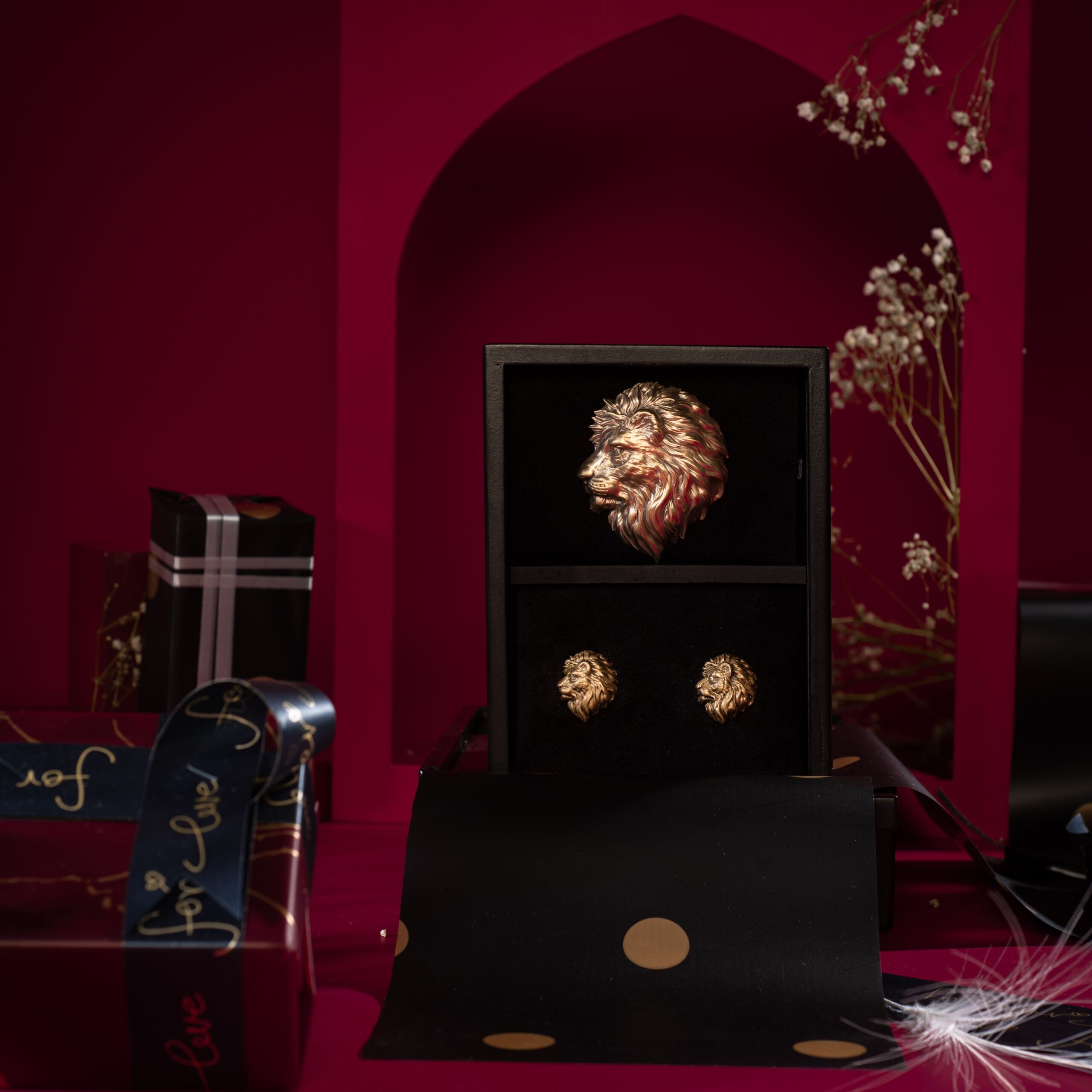 Lion is the king and so are you in your own unique way. There is a distinct royal appeal in the design that makes it extraordinary. Pair the brooch and cufflinks with an elegant outfit to steal the show