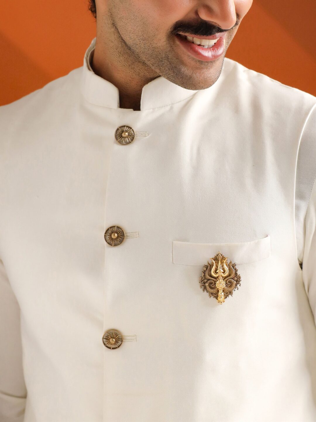 Shiva Trishul Brooch is a divine emblem symbolising the sacred trident of Lord Shiva. Crafted with meticulous precision, this exquisite brooch exudes the mystical energy and spiritual significance of the Trishul. Made from premium materials, it embodies strength, power, and divine protection, making it a perfect accessory for Mahashivratri festivities and spiritual rituals. Let the Shiva Trishul Brooch be your companion as you invoke the blessings of Lord Shiva and embark on a journey of spiritual awakening.
