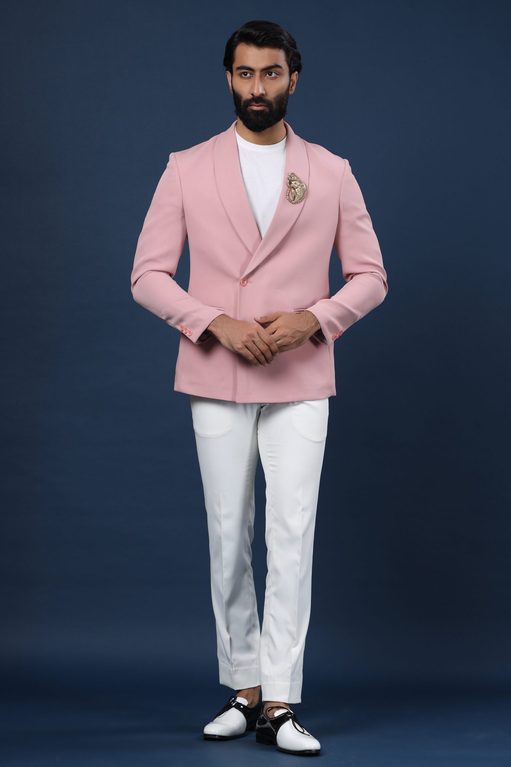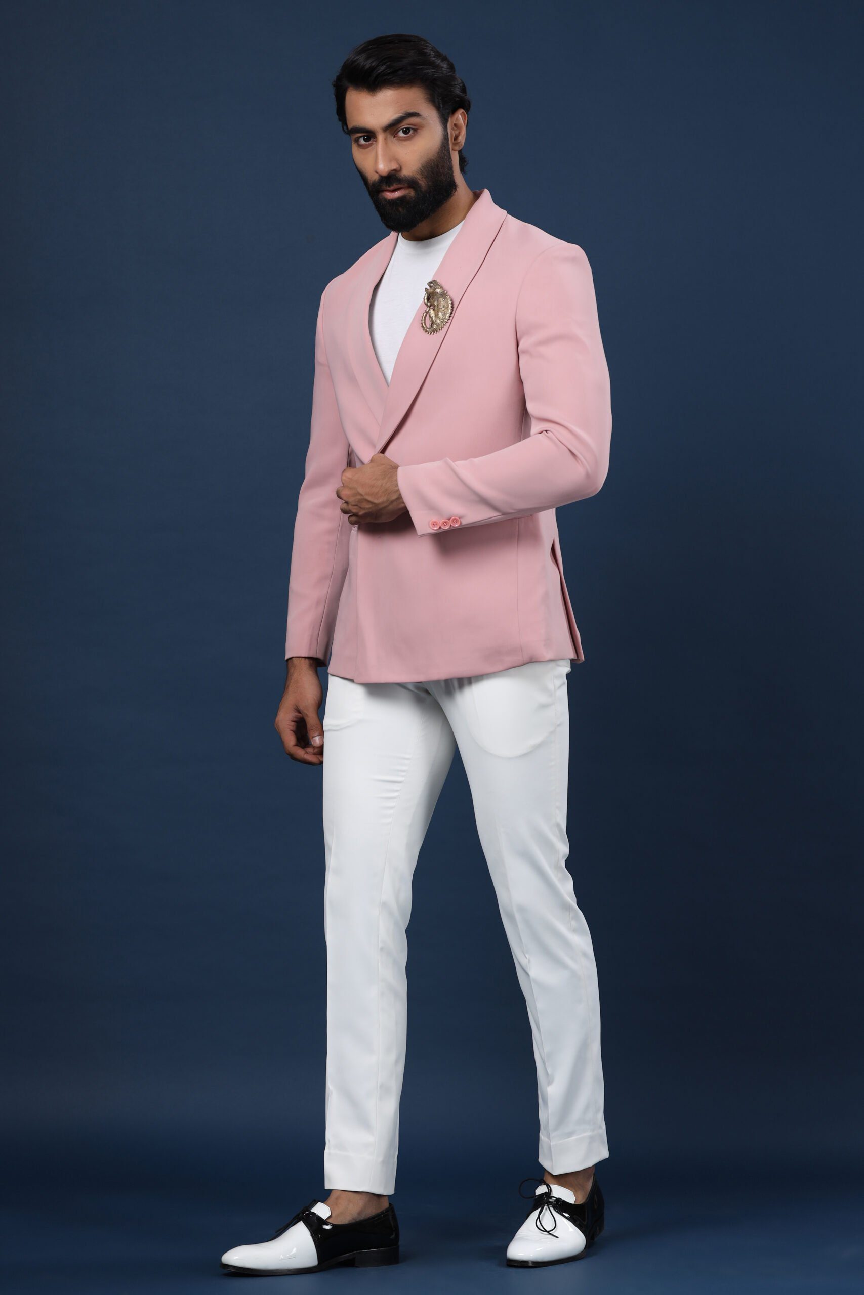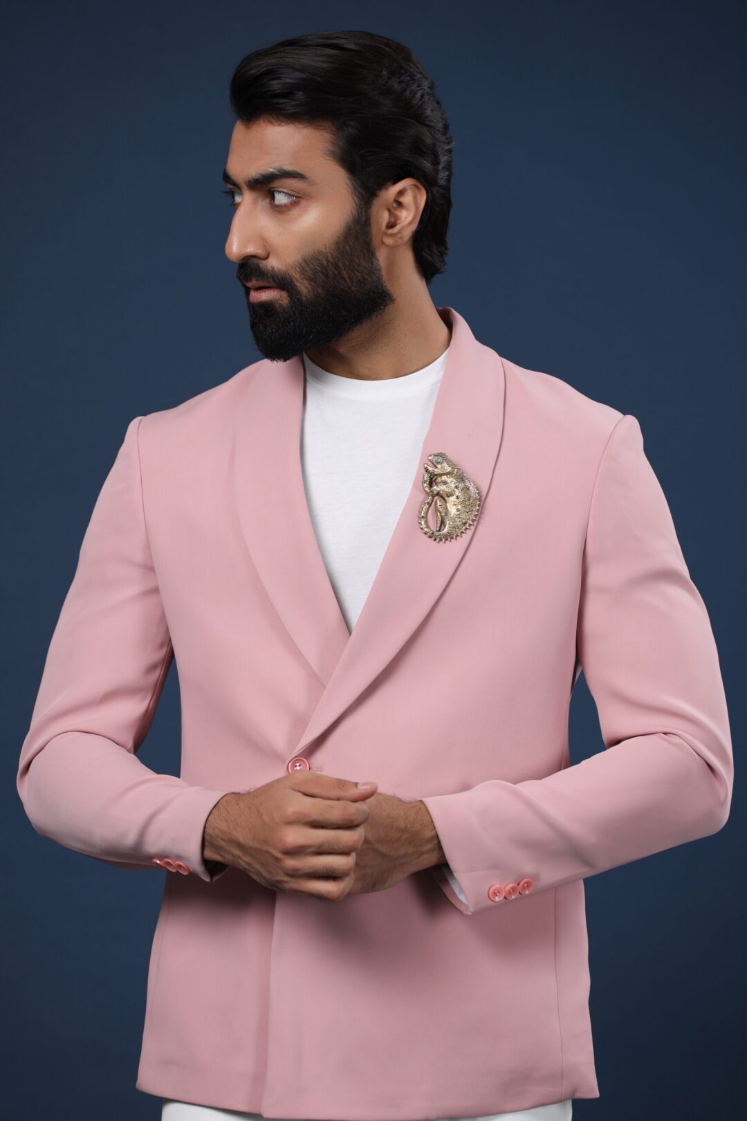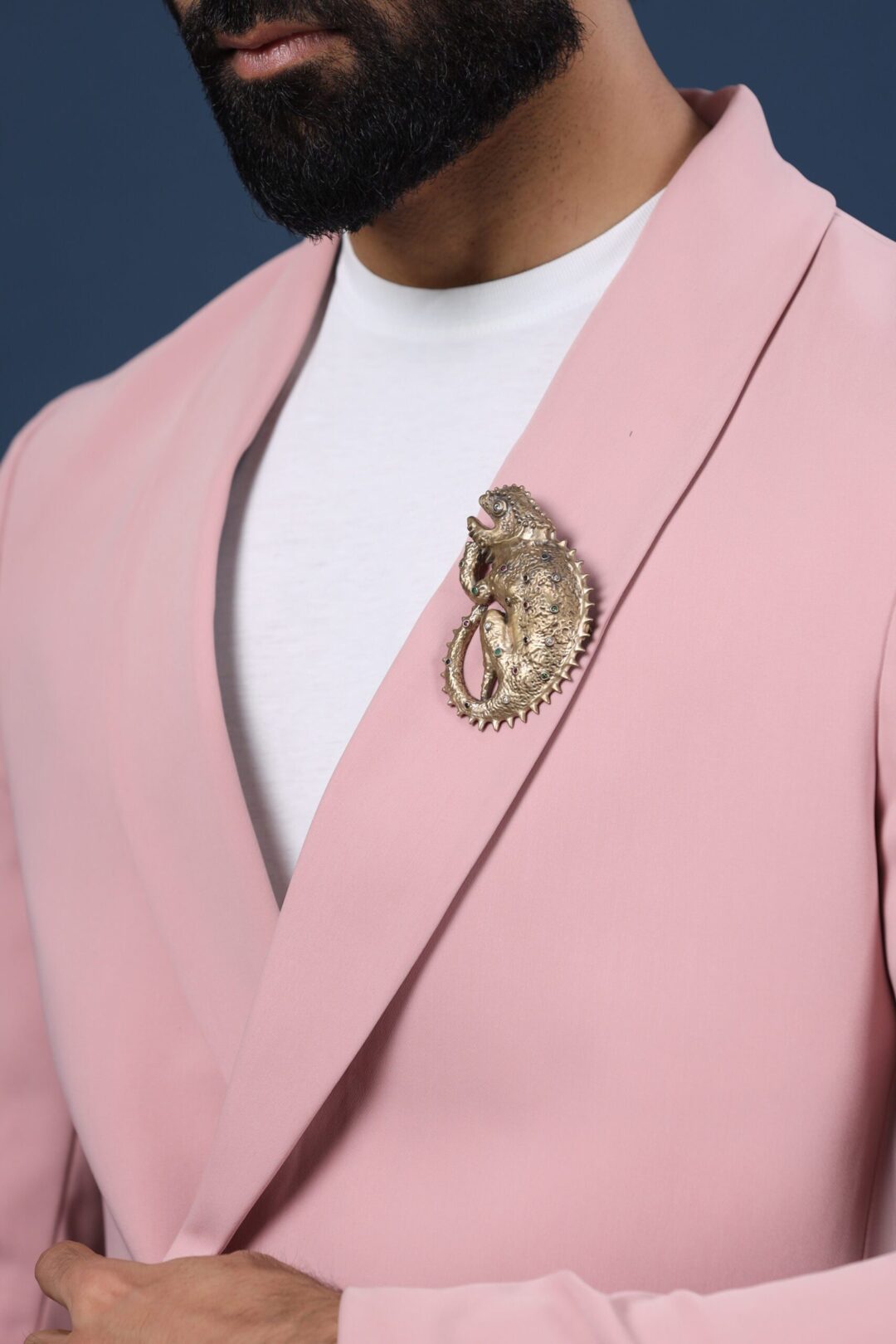 Dyed in the perfect peach hues, the Alexander jacket with shawl lapel collars oozes charm that one can easily fall for. This is a state-of-the-art fashion apparel handcrafted with love. When paired with the Chameleon brooch, this jacket is sure to add a heartwarming touch to your aura.