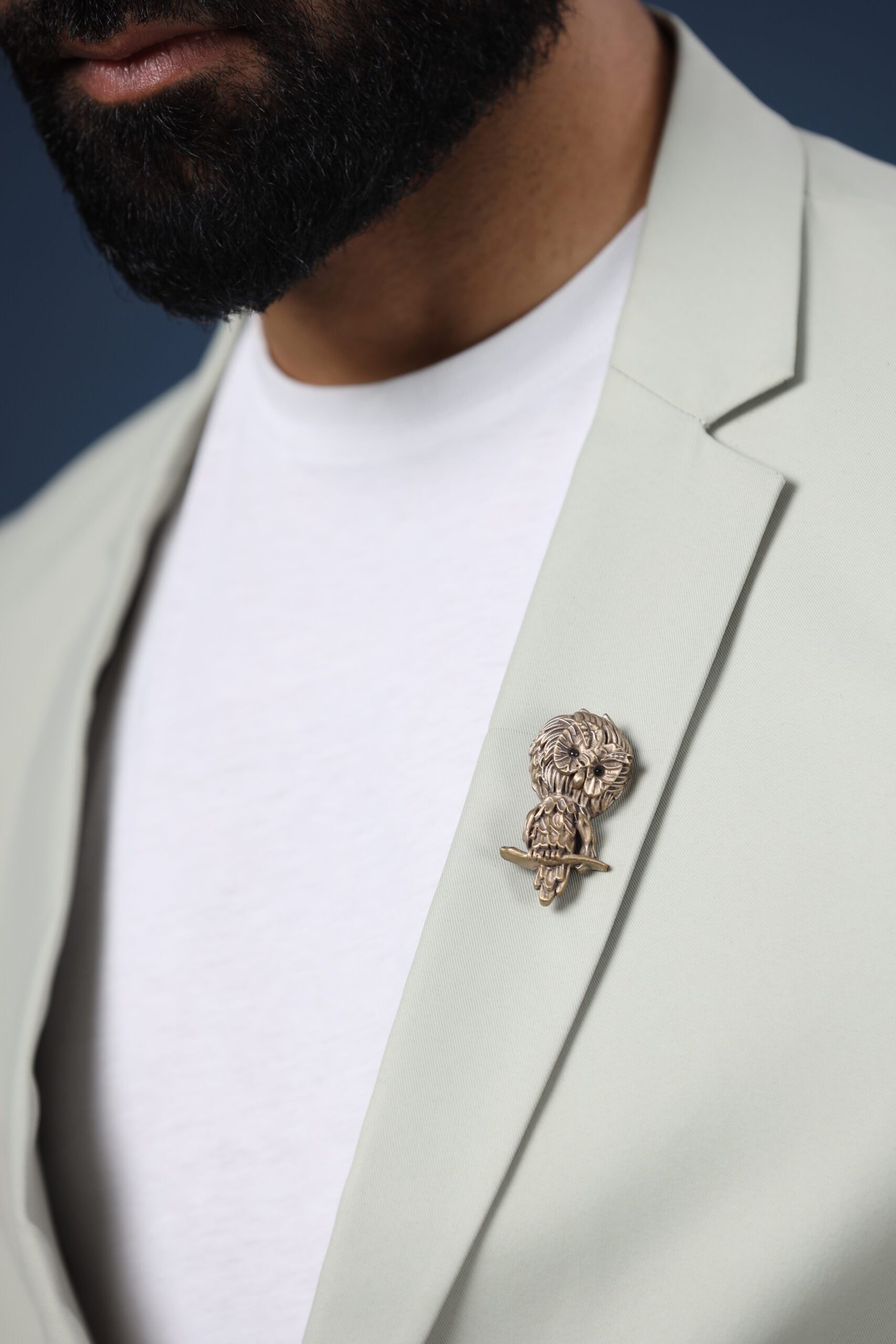 The glamour of an apparel lies in its design, stitch, and material. Made of the comforting Japanese Teijen fabric, the Cosa Nostraa Caspian jacket is a must-have. It is a greenish-grey apparel that suits the needs of formal as well as party looks. The Hooter brooch ups your style game of charming when paired with the jacket.