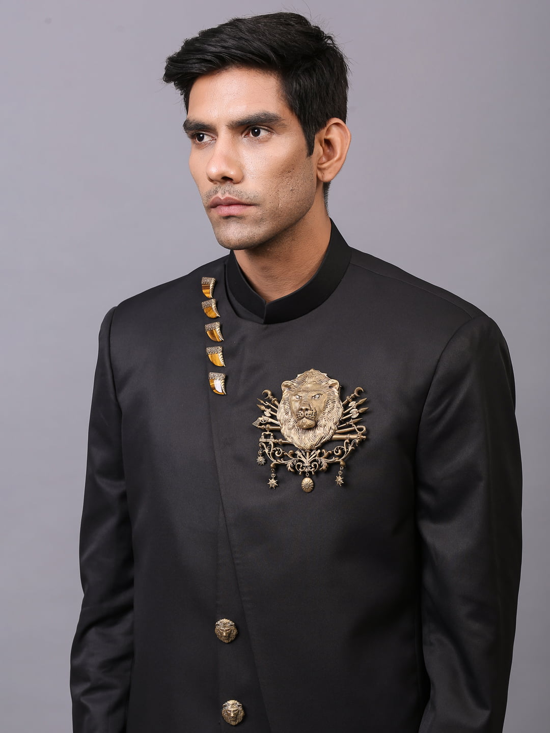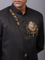The Ottoman black bandhgala is basic work of art designed for a perfect man. The high-quality fabric used to curate this piece of fashion defines Cosa Nostraa’s commitment to perfection and trust. This bandhgala is must-have party wear.