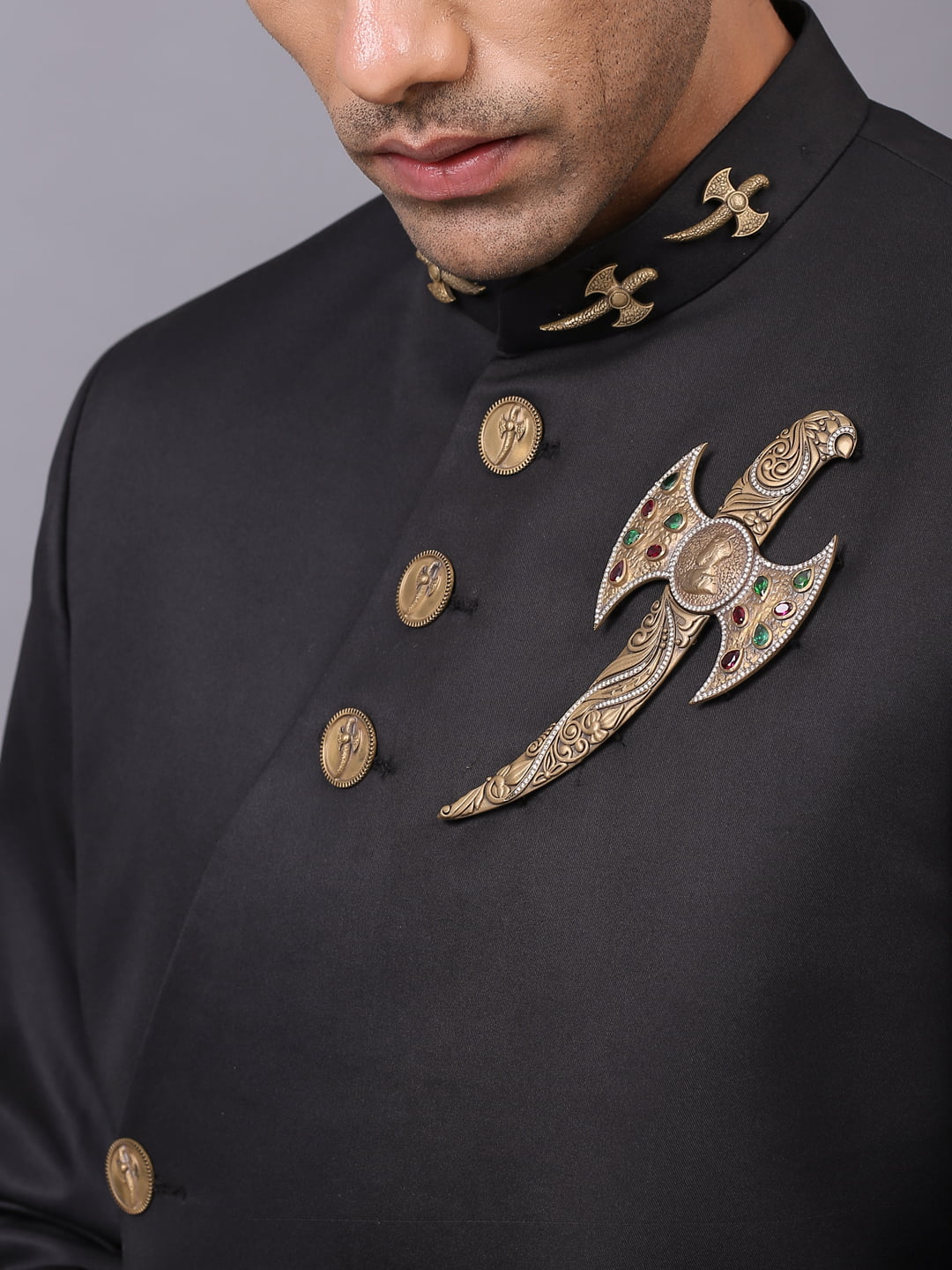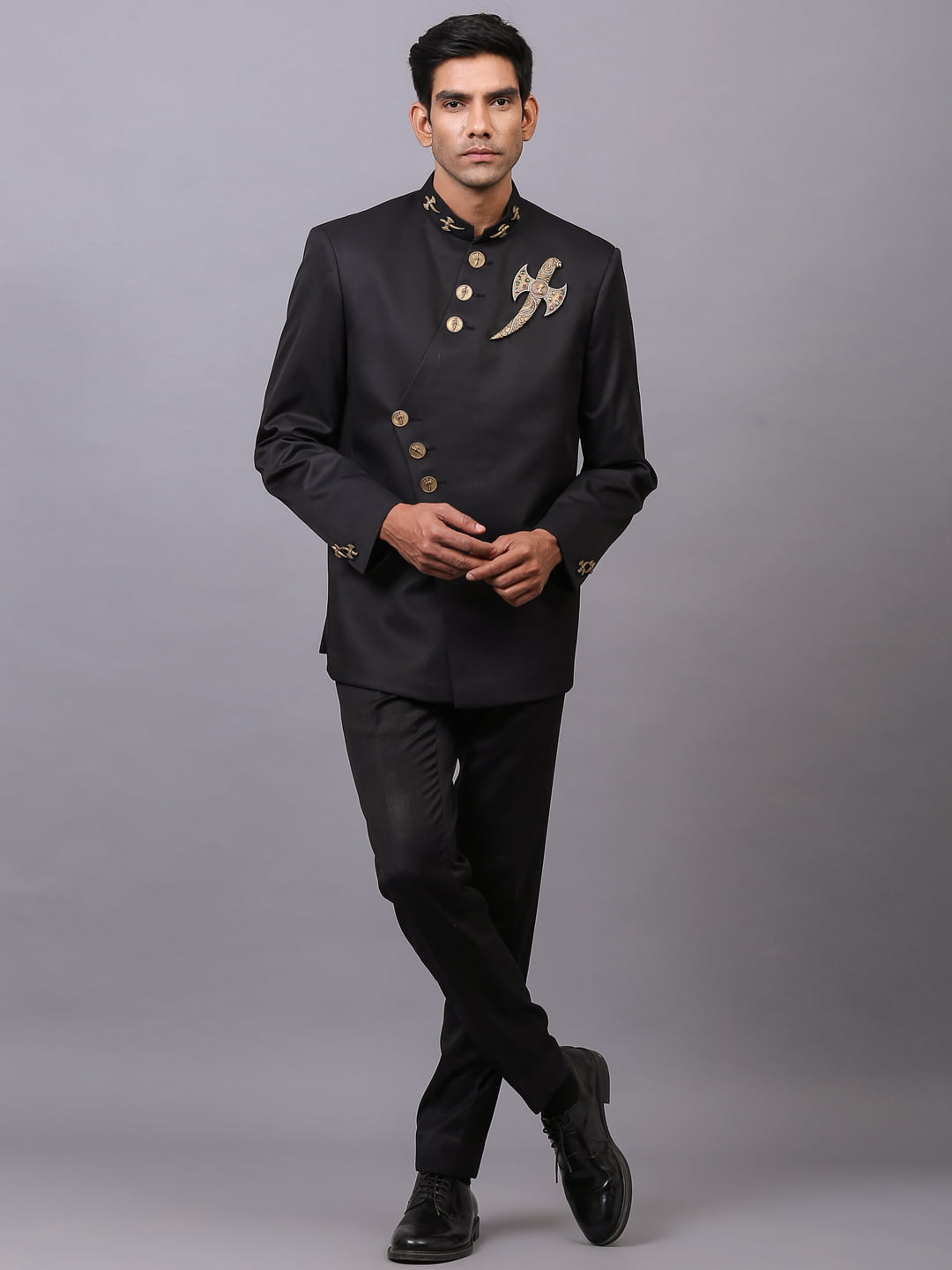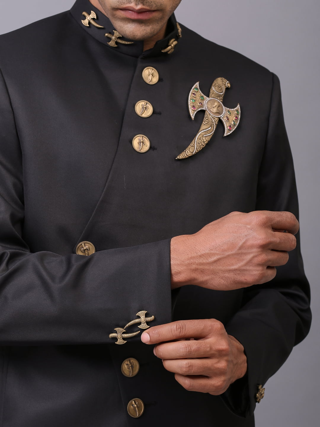 Carefully weaved with fine cotton, the black bandhgala is elegant party wear designed to adhere to the charm of your personality. This signifies a man of today’s day who is mighty and understanding.