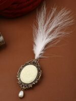 With a glass stone in the centre and feather accents, the Cream Antique Kalangi from Cosa Nostraa enhances this antique gold kalangi. Put a classic wedding appearance on it. It elegantly compliments your clothing to create this chic style and make a magnificent appearance.
