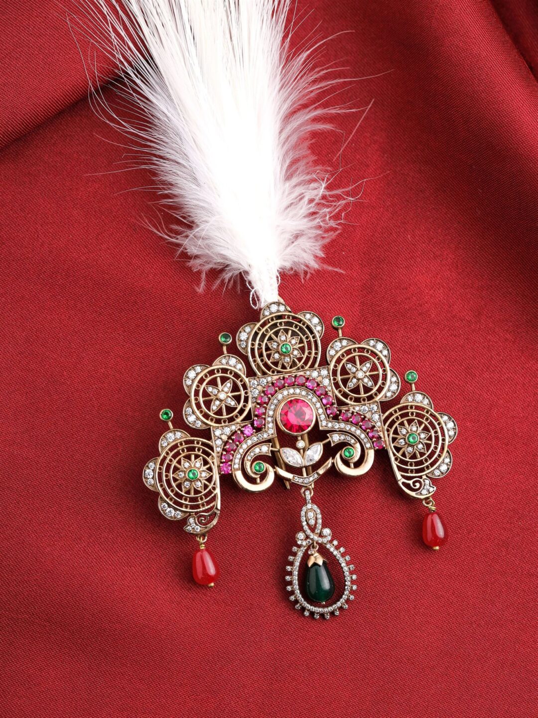 The finely carved traditional groom’s Kalangi is a beautiful adornment with a gold-tone finish. Its regal appeal makes it an ideal choice for weddings, adding an enlightened touch to your special day. Pair it with your attractive outfit to create unforgettable moments while appreciating its artistic craftsmanship.