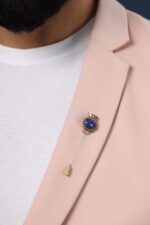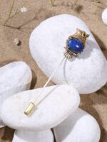 The Blue Owlet lapel pin is an example of delicate brass jewelry. The lapel is fixated with a blissful blue stone and is extremely light in weight. Pair it with a blazer or a bandhgala to exude some dapper vibes for the next event you attend.
