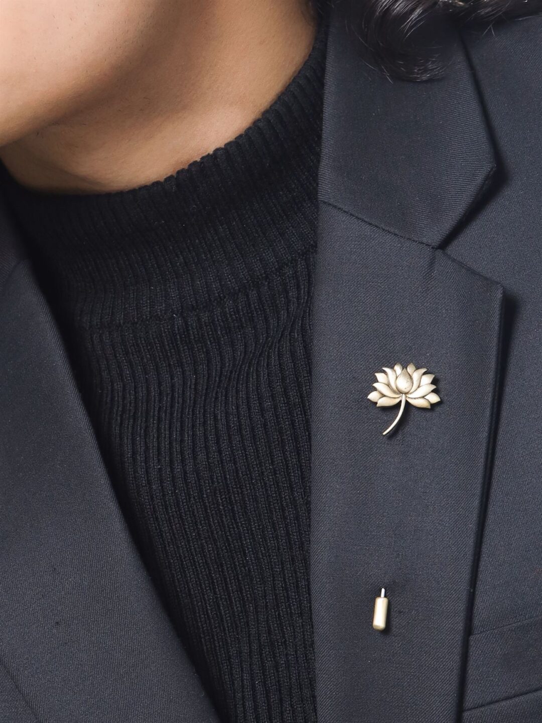 The exquisite Divine Lotus Lapel Pin is made in brass metal and radiates a stunning vibe. Wear this priceless accessory at a wedding or a business meeting in a professional boardroom. To achieve a larger-than-life effect, style it with a bandhgala or wear it with a Nehru kurta during a wedding.
