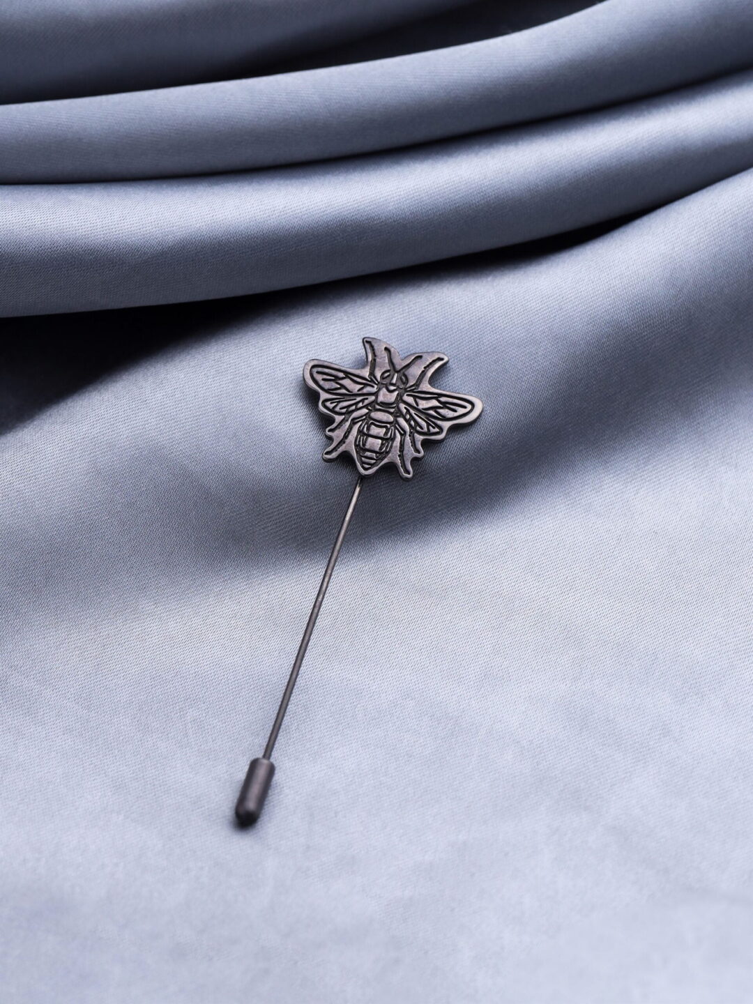 The Lapel Pin has an image of a flying honey bee engraved on it. The artwork of Lapel Pins demonstrates a mastery of the technique. It is beautiful because of the subtle accents and intricate details. The Lapel Pin’s odd abstract shape further distinguishes them as a unique pair. The Lapel Pins are ideal for those with a high standard for quality and impeccable accessory taste.