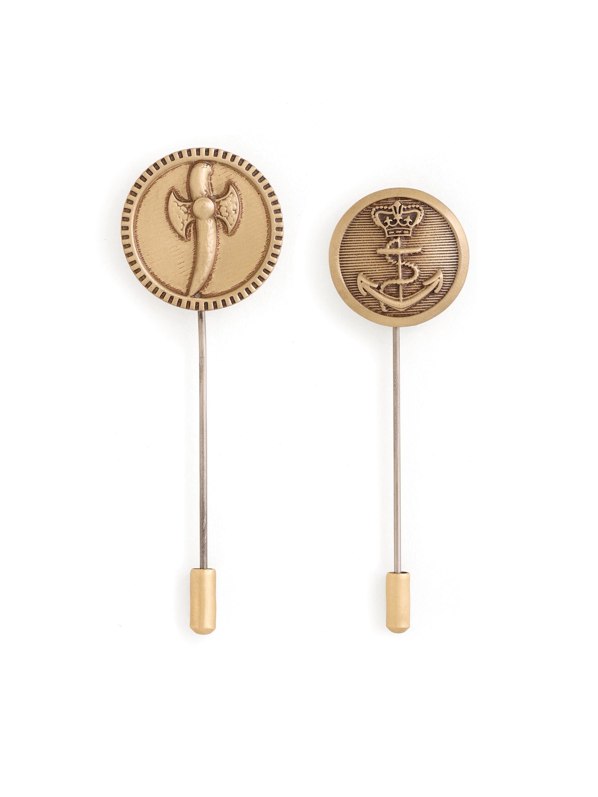 Complementing the dagger pin is the anchor lapel pin, embodying stability and steadfastness. Crafted with precision, the anchor motif symbolizes resilience and unwavering resolve. Its timeless design and polished look make it a versatile accessory for both formal and casual occasions.