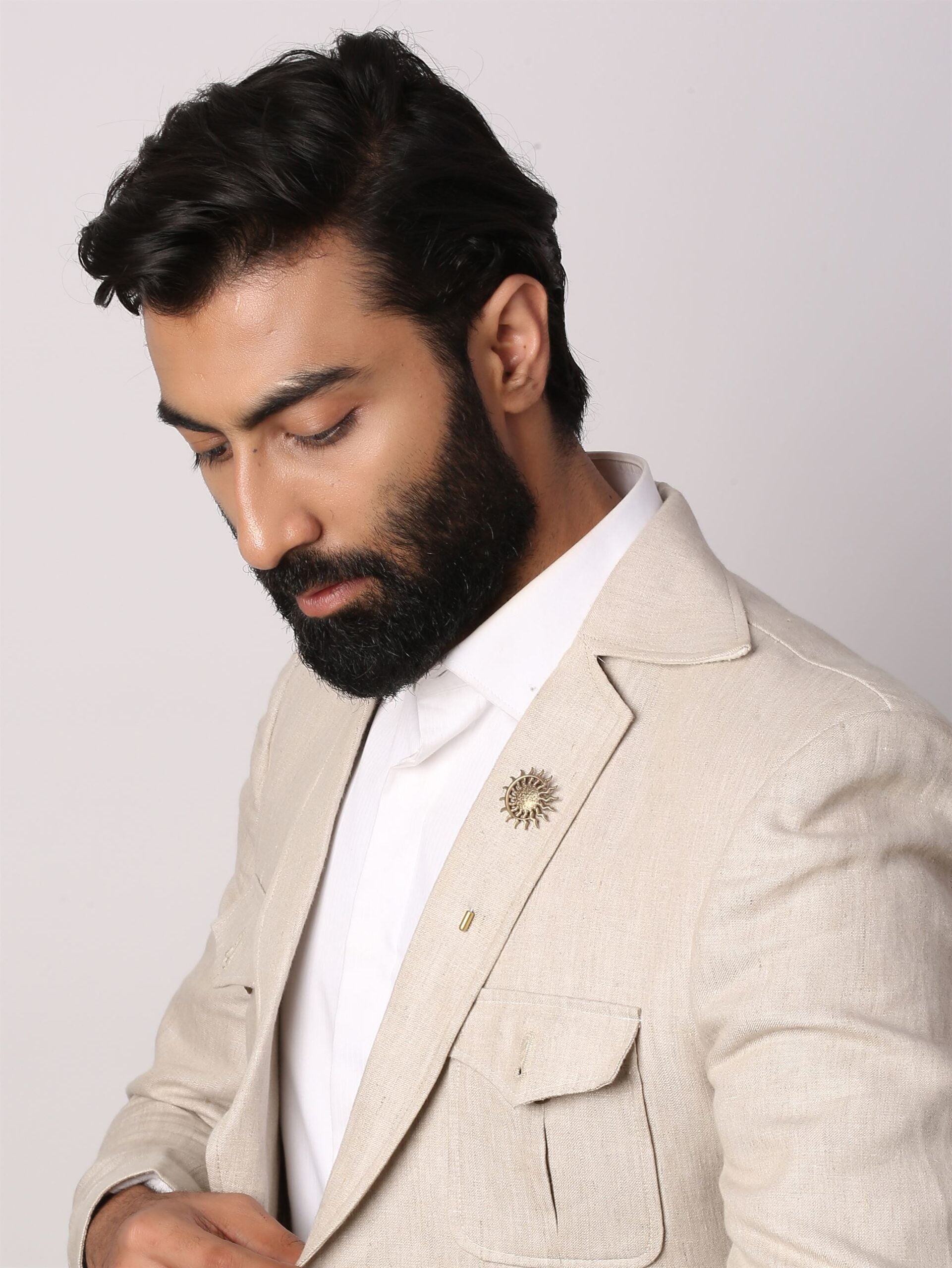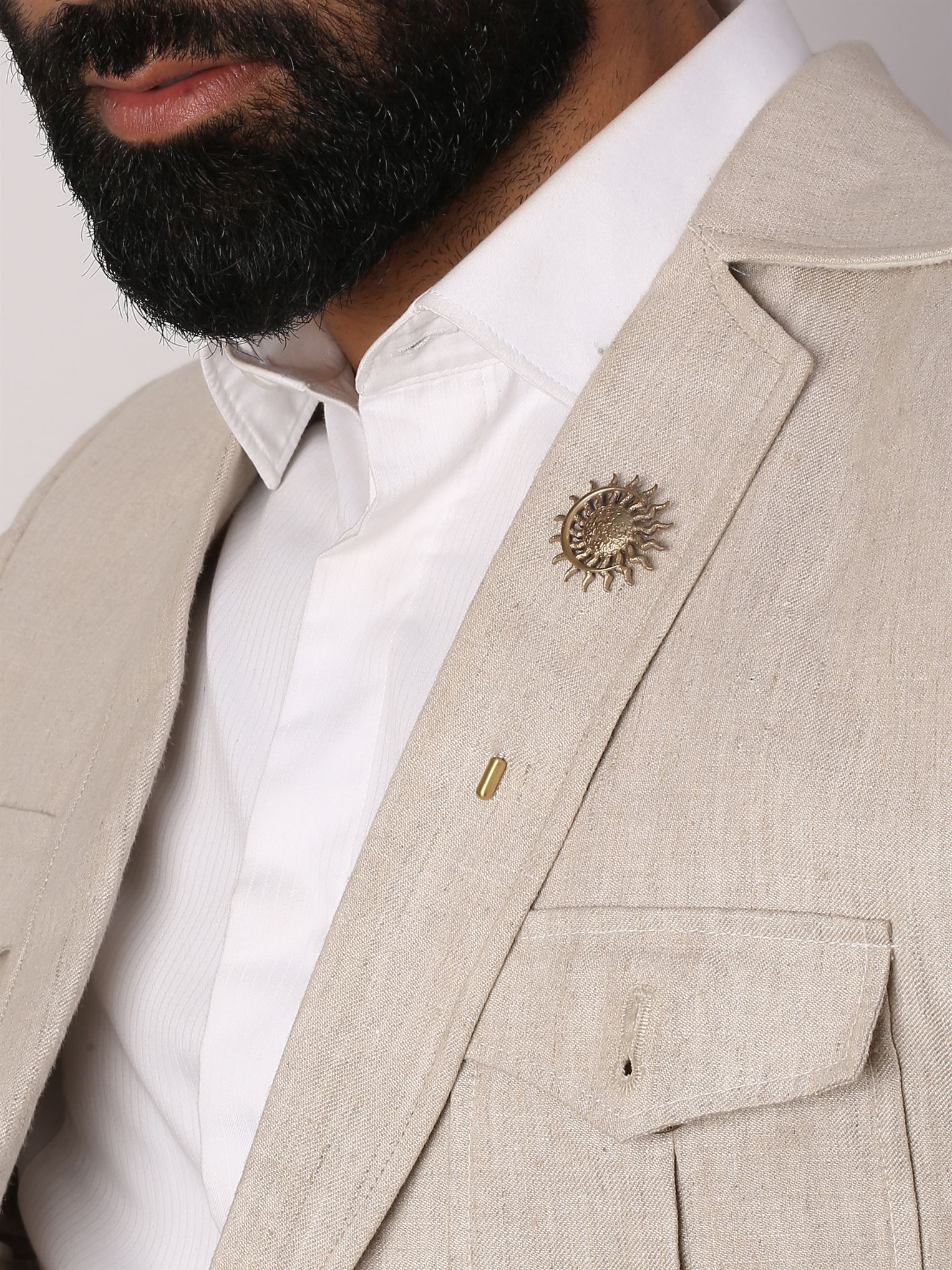 This elegantly crafted sun and moon Lapel Pin is intricately designed with different shapes along with minute detailing to give it a vintage look. It brings together a feeling of the brightness of the sun and the serenity of the moon. The sun and moon lapel pin is specially handcrafted for a charming ceremonial look. Style it with any jackets at the wedding or casual outings to get a larger-than-life look.