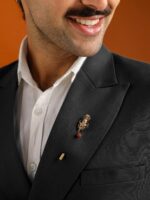 A striking men’s stick brooch inspired by Lord Shiva, featuring a sacred Shivling guarded by the powerful Naga serpent. Finished in antique gold tones with detailed craftsmanship and a Rudraksha accent, this lapel pin adds bold spiritual elegance to sherwani, bandh gala, and formal ethnic wear.