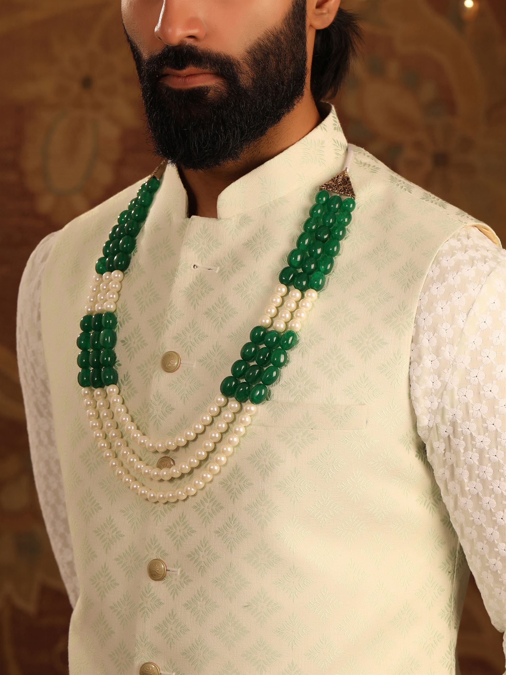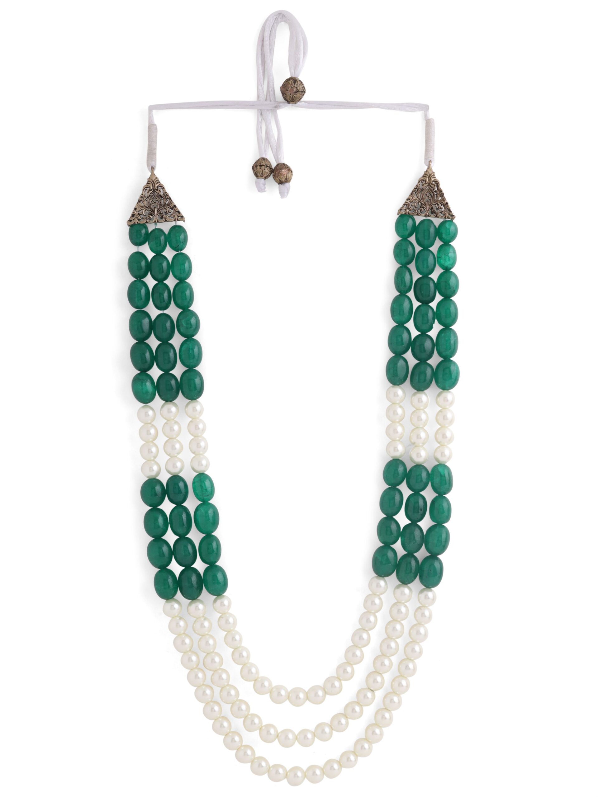 The Ethnic Green Mala is a vibrant string of beads made from genuine green stones. The unique green color and rough surface of the beads make it a perfect accessory for both spiritual and fashion purposes. The mala comes with a handmade tassel made from colorful thread that adds a touch of ethnicity.