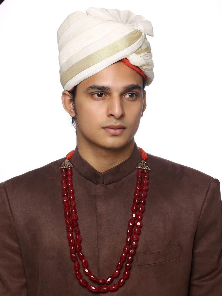 The design of the Red Brass Mala captures the radiance that comes with energy, life, love, power and the vitality for your mind, body and soul. It is sturdy, light, and durable with an elegant design. Wear this precious ornament with a bandhgala or elegant jacket. Bring forth your inner royal personality to make a statement!
