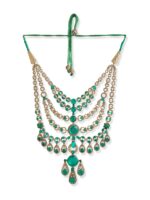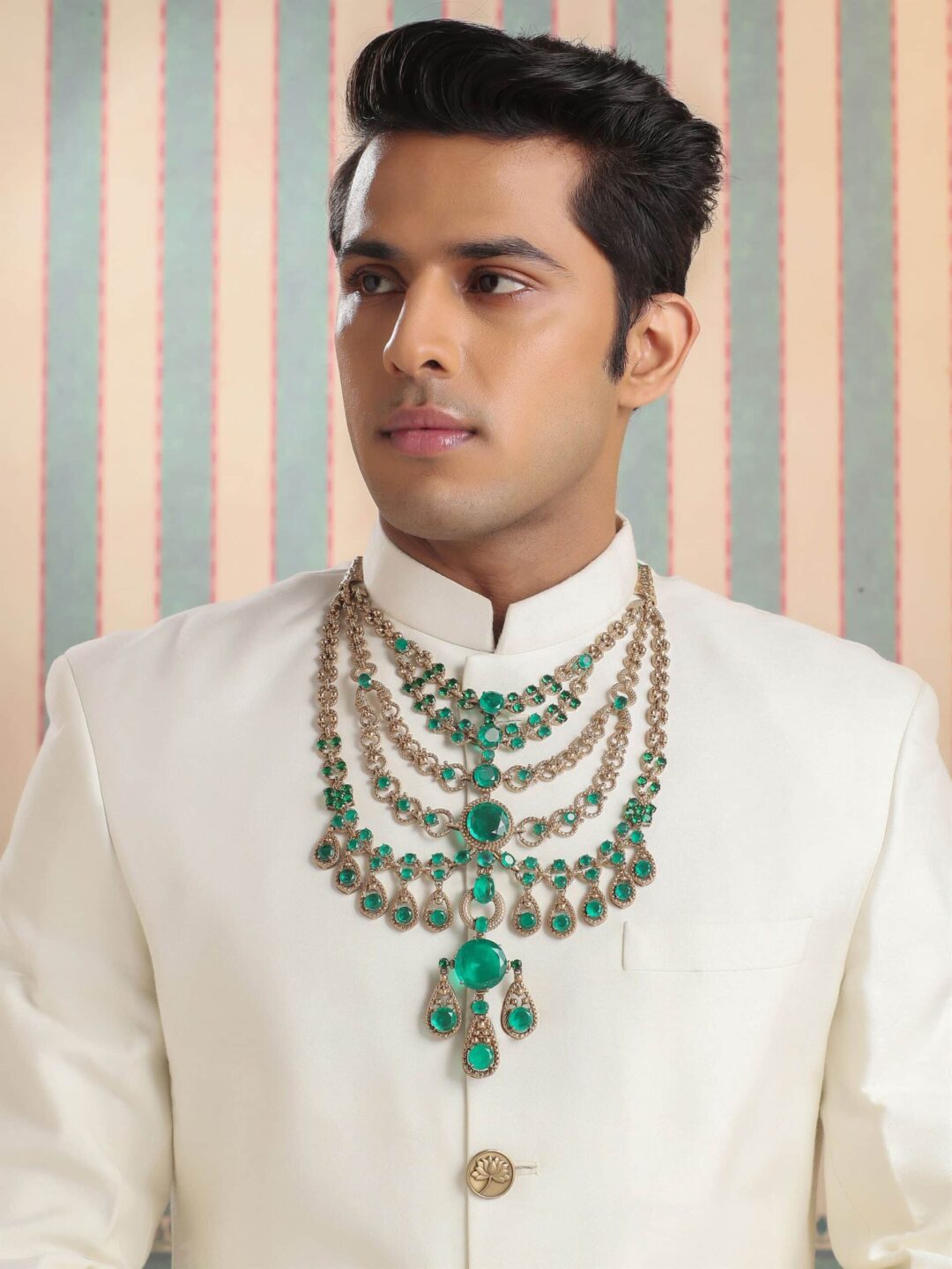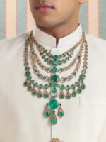 This Mala?s design is a homage to the lush grandeur found in nature’s palette. Each green bead is like a miniature work of art, carefully chosen to reflect the richness of the natural world. The arrangement is a visual feast, capturing the essence of regality with a touch of organic beauty. The design weaves a story of elegance and connection to nature.