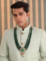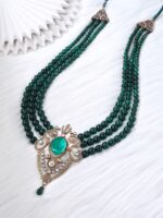 The Verdant Harmony Mala weaves a story of subtle beauty, where each bead, carefully chosen, contributes to a harmonious composition. Eschewing overt embellishments, it embraces simplicity, allowing the greens to emerge as the true stars. The design is a testament to the notion that beauty often lies in the understated.