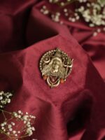 The design of this brooch exemplifies the poise and patience of the God of Gods – Lord Shiva. There is a beautiful blend of Mahadev with the Moon, Trident and Rudraksh which are very close to him. The brooch entirely makes you feel closer to Lord Shiva and brings you in awe of the mighty Lord.