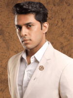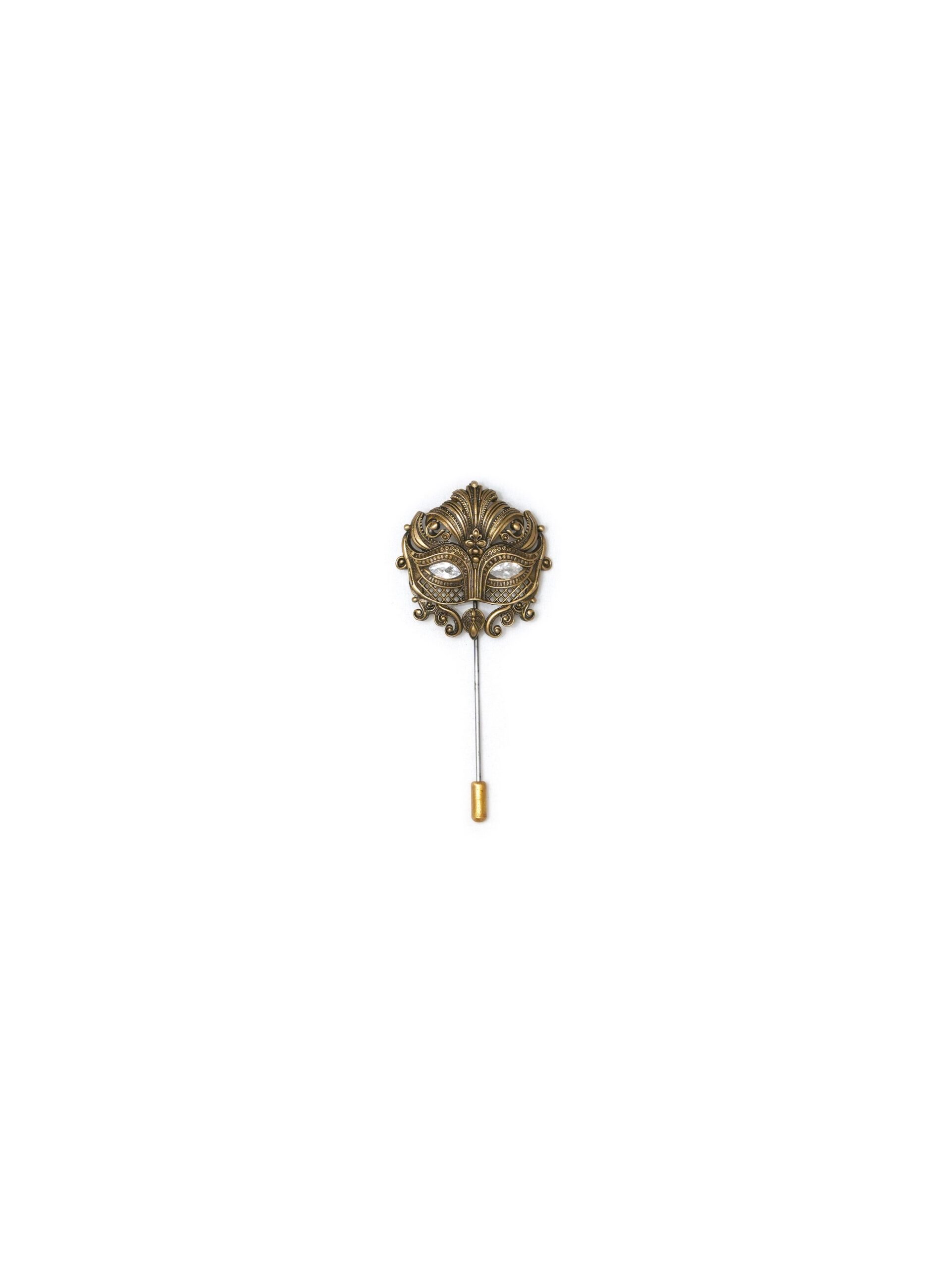 This lapel pin features an ornate alphabet ?A? motif, crafted with fine detailing in an antique gold finish.Its bold and structured design reflects heritage-inspired artistry with a modern touch.Perfect for sherwanis, bandhgalas, and formal jackets, this pin adds a personal and royal statement to wedding and festive looks.